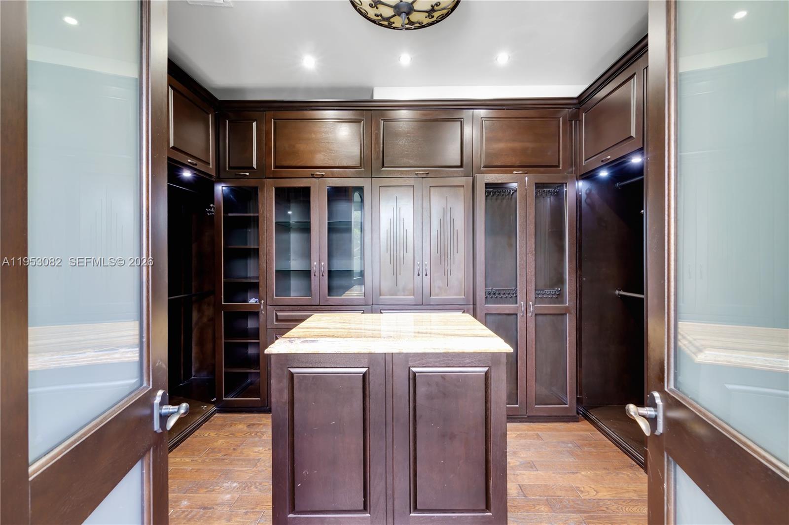 Spectacular Mediterranean-inspired estate in the highly coveted Pinecrest community. Nestled on a beautifully landscaped, oversized 0.73-acre lot, this custom masterpiece offers unparalleled luxury living with 9 bedrooms and 9+ bathrooms. Grand foyer with soaring ceilings welcomes you into a two-story layout featuring marble and wood floors, a chef’s kitchen with high-end appliances, elegant living and dining spaces, media/theater room, wine cellar, and elevator. Resort-style outdoor living with pool, spa, lush gardens, and multiple entertaining areas. Property includes 2 separate guest houses, each with 1 bedroom, 1 bathroom, and full kitchen, plus a separate in-law suite with ensuite bathroom. Abundant parking with 4-car garage. Prime location near top-rated schools and premier dining and shopping. A true Pinecrest showpiece.