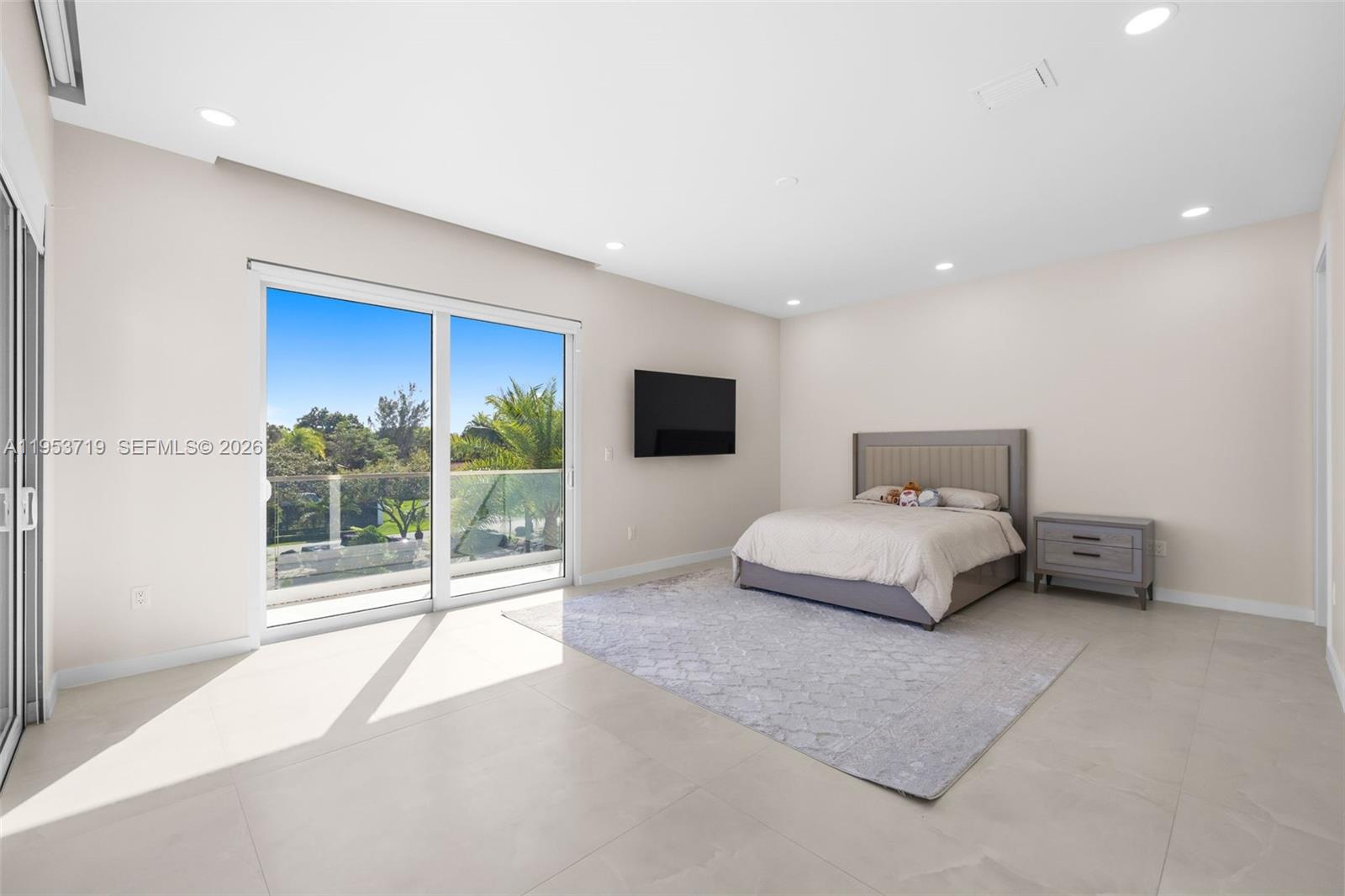A recently completed modern residence offering refined scale, architectural clarity, and thoughtful design throughout. This home features five en-suite bedrooms plus a powder room, with soaring two-story ceilings anchoring the kitchen, entry, and primary entertaining spaces to create an immediate sense of volume and light. Walls of expansive impact glass frame the outdoors and flood the interiors with natural light, while the open, well-proportioned floor plan is designed for seamless living and entertaining. The kitchen and main living areas flow effortlessly to the exterior, where a glistening pool, lush grassy yard, and private sports court create a true indoor-outdoor lifestyle. The outdoor spaces are thoughtfully layered, featuring a poolside entertaining area with a covered summer kitchen. A rooftop sundeck, complete with a secondary grill, offers generous space to tailor the setting for open-air dining, lounging, and entertaining under the stars. A detached cabana/guest suite offers flexibility for guests, work, or recreation. The property is moments from the bay, with coastal breezes and a tranquil setting that enhances everyday living. Located in one of the most desirable neighborhoods of Palmetto Bay, this is a turnkey modern home defined by scale, light, and quality, ideal for those seeking a refined yet relaxed South Florida lifestyle.