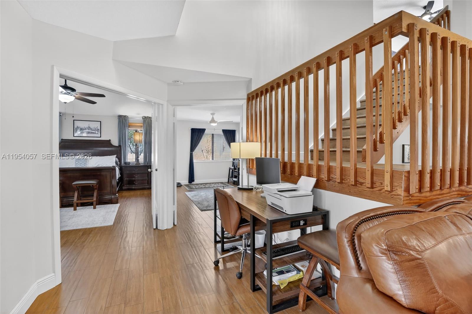 Welcome to this impeccably maintained 4 bedroom, 2.5 bath home in the sought-after Cross Creek community of Plantation, where thoughtful design meets effortless living. The functional floor plan features the primary suite and a secondary bedroom on the main level, ideal for guests, a private workspace, or flexible living with seamless flow throughout. The primary suite offers a true retreat with a spa-inspired bath, soaking tub, and separate walk-in shower. An open kitchen connects effortlessly to the living and dining areas, creating an inviting space for everyday living and entertaining. Timeless tile flooring anchors the main level, while updated vinyl flooring enhances the upper level. Recent improvements include fresh interior paint and a new refrigerator, adding to the move-in-ready appeal. Upstairs, two additional bedrooms are paired with a spacious loft-style family area, ideal as a media room or secondary living space. The fenced backyard offers privacy and tranquility, complete with a covered patio for relaxed gatherings or quiet evenings. A fully permitted solar panel system provides exceptional energy efficiency with low monthly electric costs. Meticulously cared for and reflecting true pride of ownership, this home is ideally located near Plantation’s shopping, dining, and major commuter routes, offering comfort and convenience in one exceptional property.