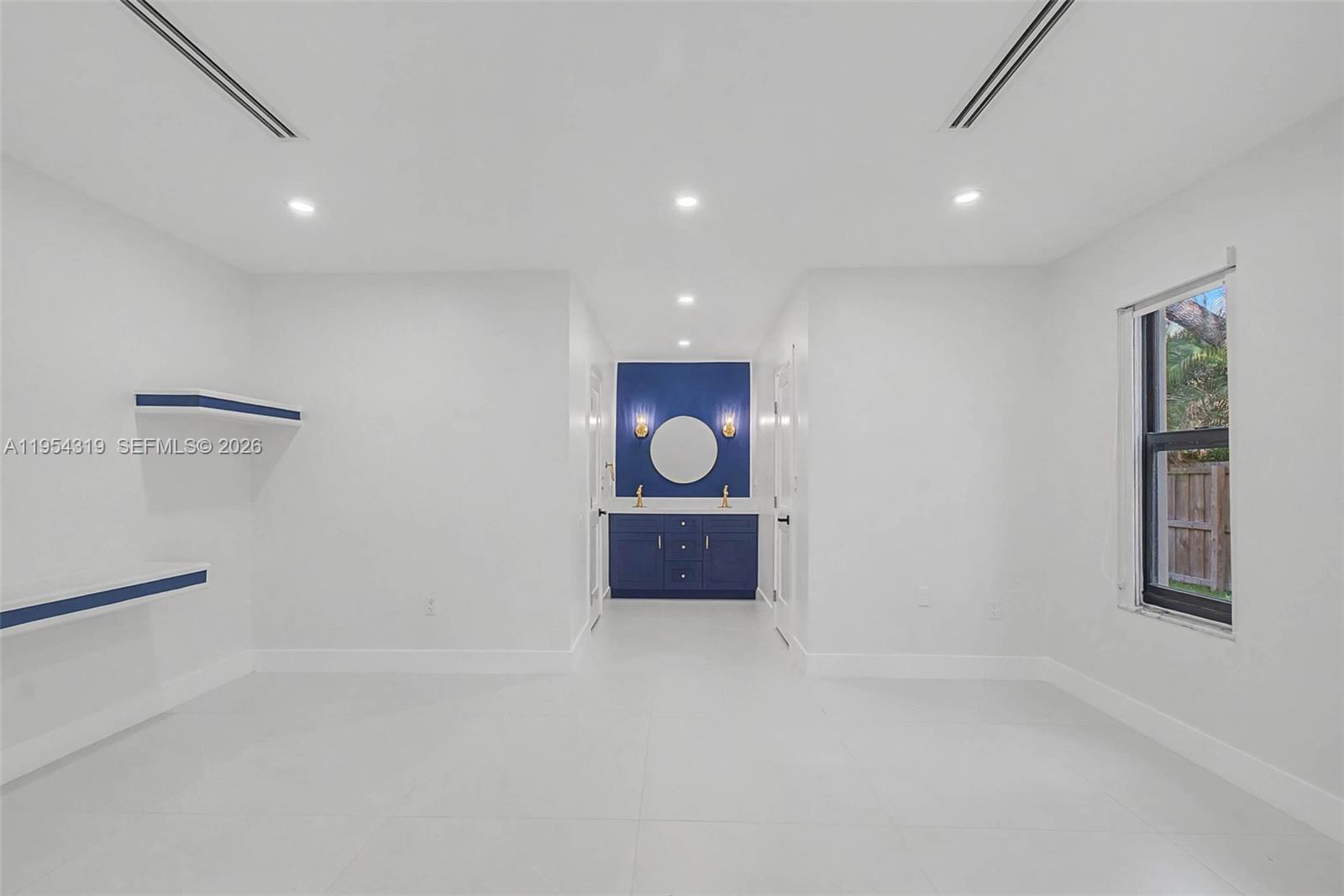 Beautiful, newly renovated 4 bdrm/ 3 bath home nestled on a charming oak tree-lined street in Palmetto Bay. Open concept living area with fabulous lounge complete with wet bar & retro wood burning stove. Custom built-ins for your entertainment system. Sleek, modern kitchen with eat in snack bar, opens to dining area. Primary suite features walk in closet, gorgeous spa like bath. Plus 2 additional guest bdrms. Separate junior suite. Brand new metal roof, PVC plumbing, AC, security cameras, impact windows/doors, blinds, porcelain floors. Updated and refinished pool with relaxing waterfall and swim shelf, marble paver patio, screened enclosure. Fenced backyard w/ shed. Spacious 2 car garage and paver driveway. Just a quick golf cart ride to restaurants, a coffee shop and historic Deering Estate.