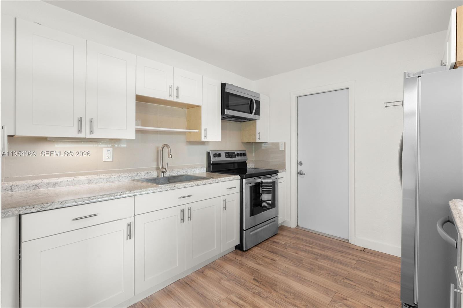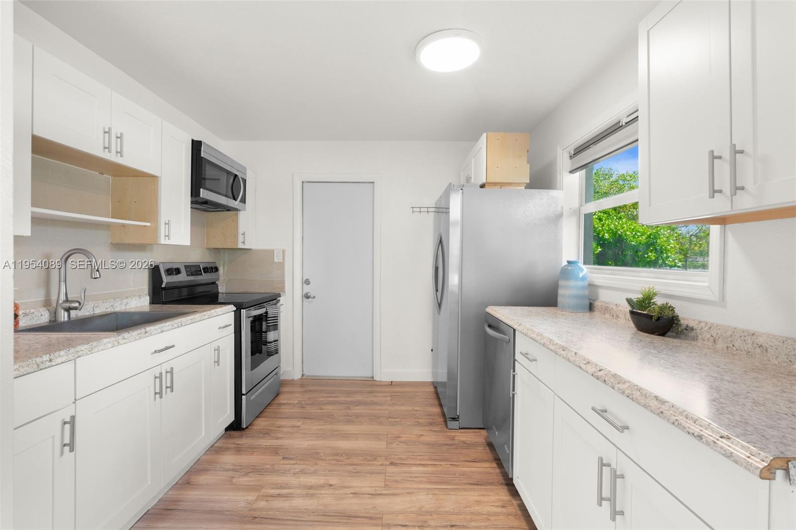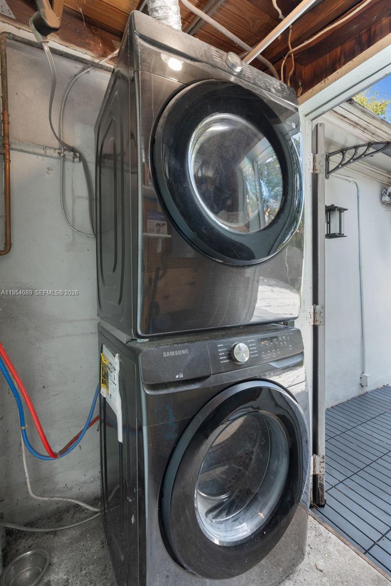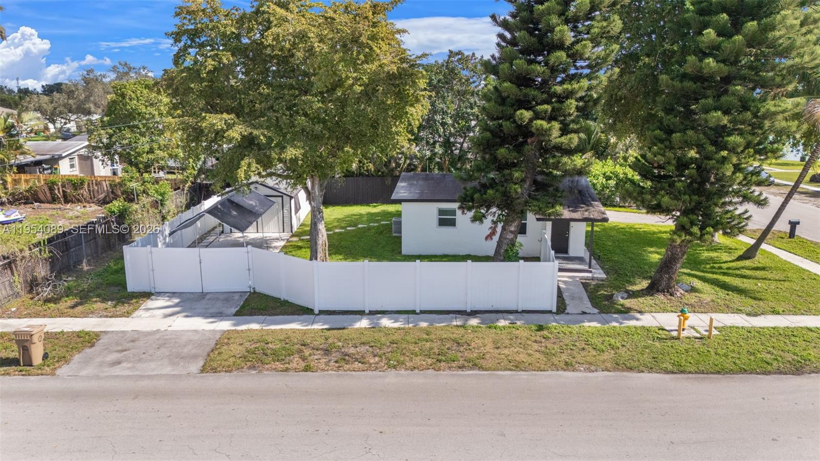 This is a great starter home on huge FULLY FENCED corner lot. Updated 2 bedroom / 1 bathroom with HURRICANE IMPACT WINDOWS. Kitchen has white shaker cabinets with stainless steel appliances and laminate counter tops. Refrigerator is less than a year old. The bathroom is light and bright with a tub/shower combination. Laminate flooring throughout. There is a NEST thermostat and RING doorbell at the front door. Enjoy the view of the lake, located across the street, while in the living room and kitchen. There is also a children's playground across the street as well. The neighborhood has sidewalks for added safety. Utility closet has newer Samsung front load stackable washer and dryer. Tankless hot water heater assures you you'll never run out. There are two separate driveways, one of which is covered and inside the gate of the fenced yard. You'll also enjoy the huge workshop in the backyard with electricity. Plenty of room for your tools, mower, motorcycle or other hobbies. Sprinkler system is on well water and inside the house is city water. This home is on a septic tank with a new drain field. Roof is approximately 9 years old and AC is approximately 8 years old. This home is just a few minutes to Davie Road near Broward College, FAU, Nova Southeastern, and other schools. Plenty of shopping and restaurants nearby. Easy access to the Turnpike, I-595, I-75.