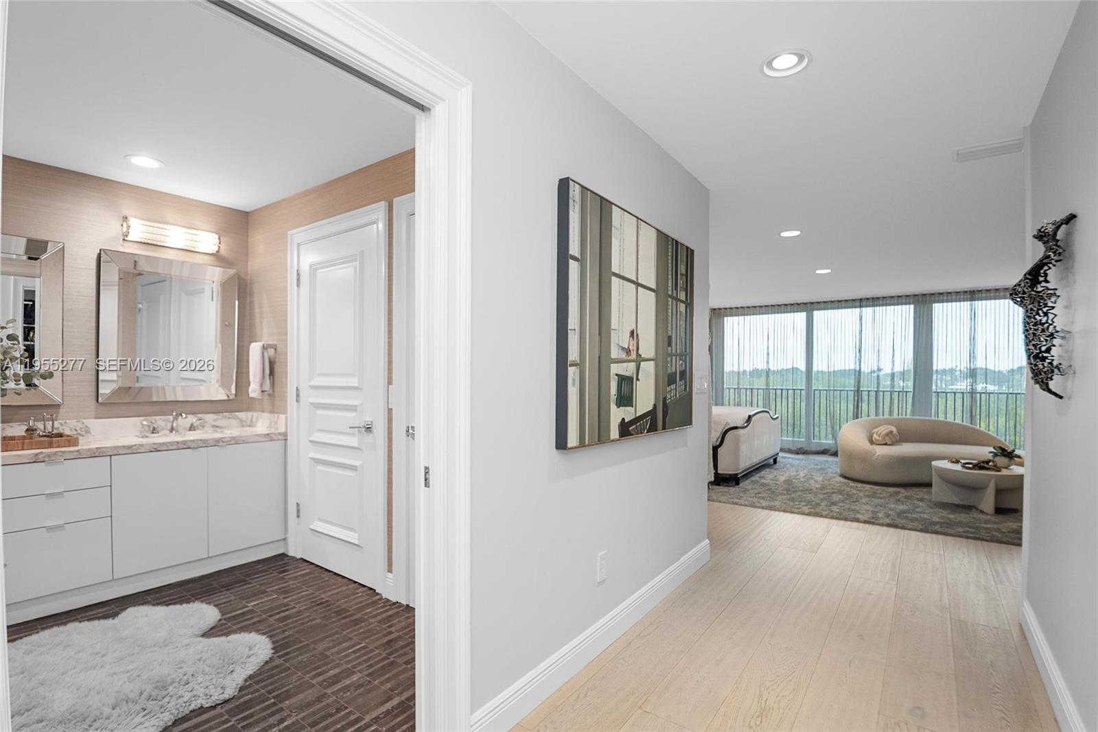 Designed to capture the essence of elevated waterfront living, Seabreeze Corner is a completely remodeled corner townhouse offering breathtaking water views & effortless coastal sophistication. This light-filled residence offers 3 bedrooms, 3.5 baths, impact windows & doors, a recently installed metal roof, a private heated pool & the rare luxury of a private elevator, all designed for comfort, security & ease. The beautifully updated kitchen features sleek cabinetry & stainless-steel appliances, flowing seamlessly into open living spaces ideal for entertaining or unwinding after a day on the water. Enjoy serene water views from multiple vantage points & the convenience of a 2-car garage equipped with an auto lift/elevator, allowing for up to 3 vehicles—a standout feature rarely found in townhome living. Crowning the home is a private rooftop terrace, a blank canvas ready to be built out to suit your lifestyle—whether you envision an outdoor kitchen, lounge area, spa, or sunset retreat all overlooking the water. Directly across is the heated community pool/spa, gym, & pickleball/tennis courts. Residents also enjoy access to additional resort-style amenities, including a full-service marina (with slips available for purchase), a private sandy beach with volleyball, a nature trail leading to the bay, & a scenic waterfront boardwalk ideal for morning walks & sunset strolls. Seabreeze Corner isn’t just a home—it’s a lifestyle defined by water, wellness, & coastal sophistication.