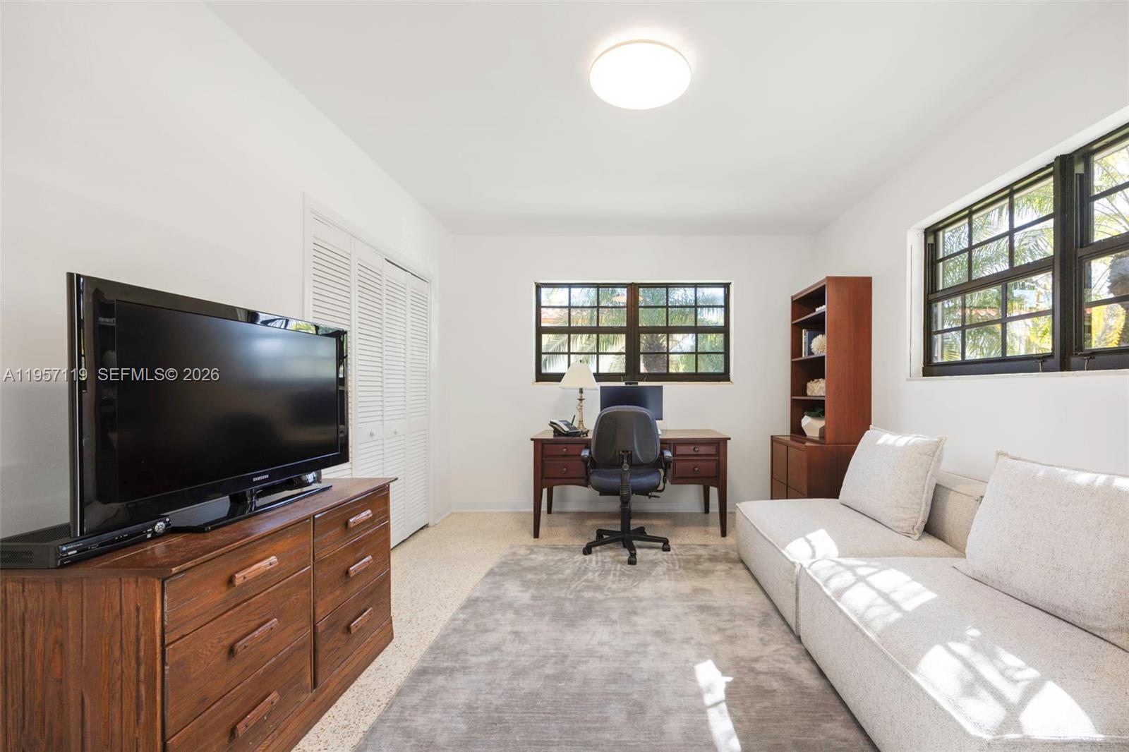 This inviting 3-bedroom, 2-bath residence offers the coveted Coral Gables trifecta: a spacious lot, pool/spa, and two-car garage. Just beyond the foyer, the light-filled living room opens to serene views of the pool, while the split floor plan provides a functional layout for everyday living. Recently painted inside and out, the well-maintained home showcases original terrazzo and Saltillo floors that add warmth and timeless character. Outdoor living is enhanced by a covered patio, ideal for relaxing or entertaining. Set deep on the lot, updated landscaping offers added privacy. Located within walking distance to the University of Miami and close to places of worship, shopping, dining, and all that Coral Gables has to offer.