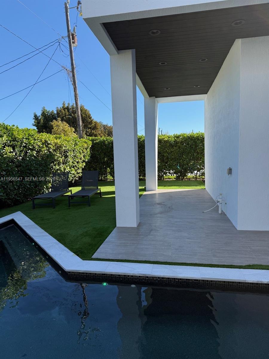 Welcome to this stunning custom-built modern jewel, where sleek design meets effortless luxury. This exceptional residence offers 4 spacious bedrooms and 3 beautifully appointed bathrooms, crafted with meticulous attention to detail throughout. At the heart of the home is a state-of-the-art gourmet kitchen, featuring premium high-end appliances and an elegant design perfect for entertaining and memorable family gatherings. The open-concept floor plan is enhanced by soaring 12-foot ceilings and an abundance of natural light that flows seamlessly throughout the space. A striking full wraparound wall of glass creates a seamless indoor-outdoor experience, offering breathtaking views of the pool and elevating everyday living. The thoughtfully designed layout includes a private fourth bedroom with its own bathroom, ideal for guests, in-law quarters, or a home office retreat. Additional highlights include hurricane-impact windows and doors, exquisite craftsmanship, and a one-car garage for added convenience. This is modern luxury living at its finest—stylish, functional, and truly move-in ready.