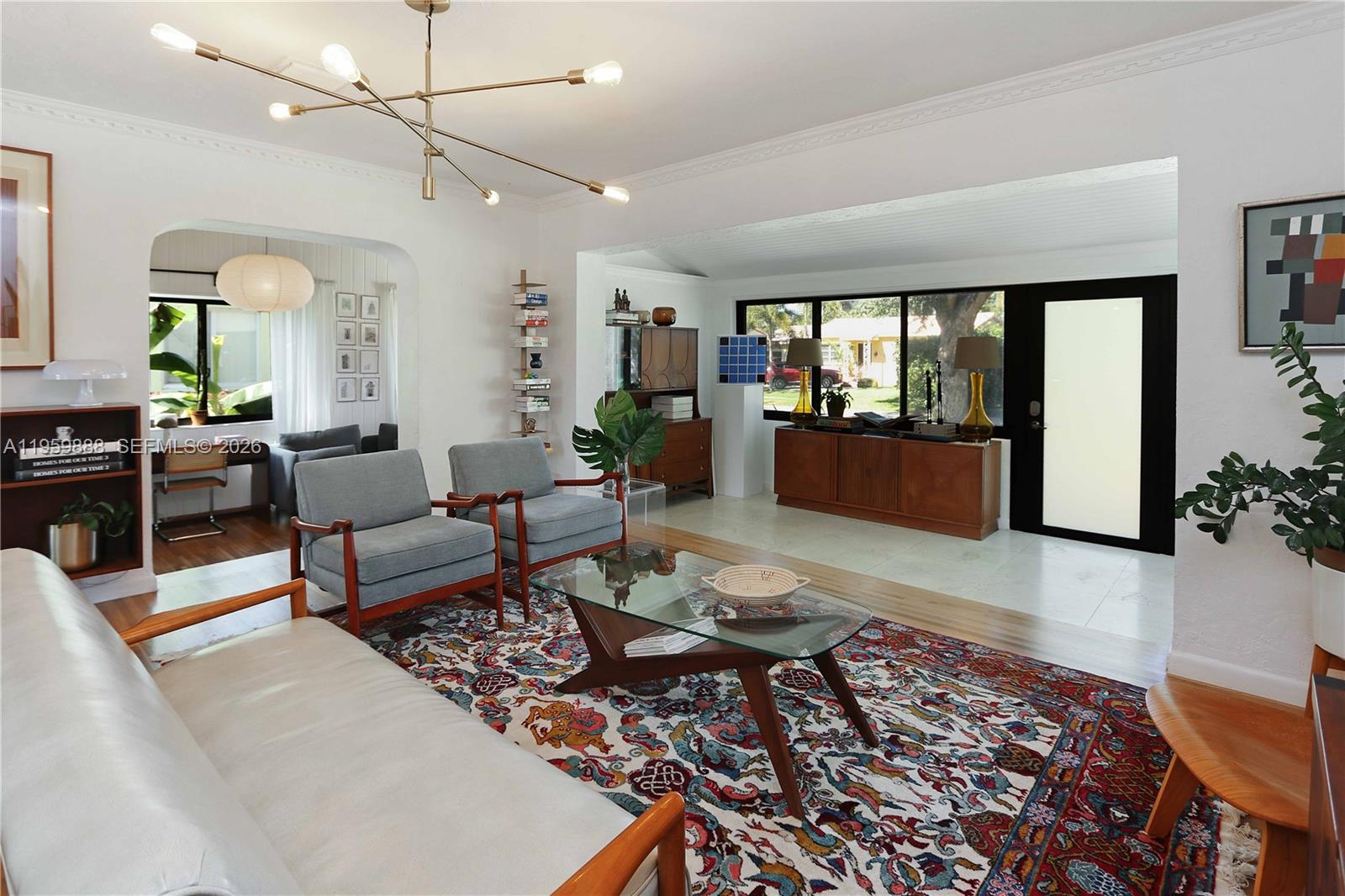 This 3-bedroom, 3-bath residence is located in the prestigious Hollywood Lakes community and offers a rare opportunity with a detached 1-bedroom, 1-bath guest house. The main house features 2 bedrooms, 2 bathrooms, plus a den/TV room, creating flexible living spaces ideal for today’s lifestyle. The main home welcomes you with a charming front porch and restored original wood floors that add timeless character. The living room is accented with crown molding and flows into a formal dining area, perfect for hosting. The kitchen was completely remodeled in 2025 and showcases marble flooring, exotic granite countertops and backsplash, stainless steel appliances, and a clean, modern design. Additional interior highlights include impact windows and doors (2021), a dedicated laundry room, and a converted garage providing added usable space. Major upgrades include a 2019 roof, 2019 A/C, and a 2023 tankless gas water heater, offering peace of mind and efficiency. Step outside to a spacious, fully fenced backyard with PVC fencing, ample room to add a pool, and rear parking for up to three vehicles—an ideal setup for entertaining, guests, or future expansion. With a versatile layout, modern updates, and income or guest potential, this Hollywood Lakes property is a standout opportunity in one of the area’s most desirable neighborhoods.