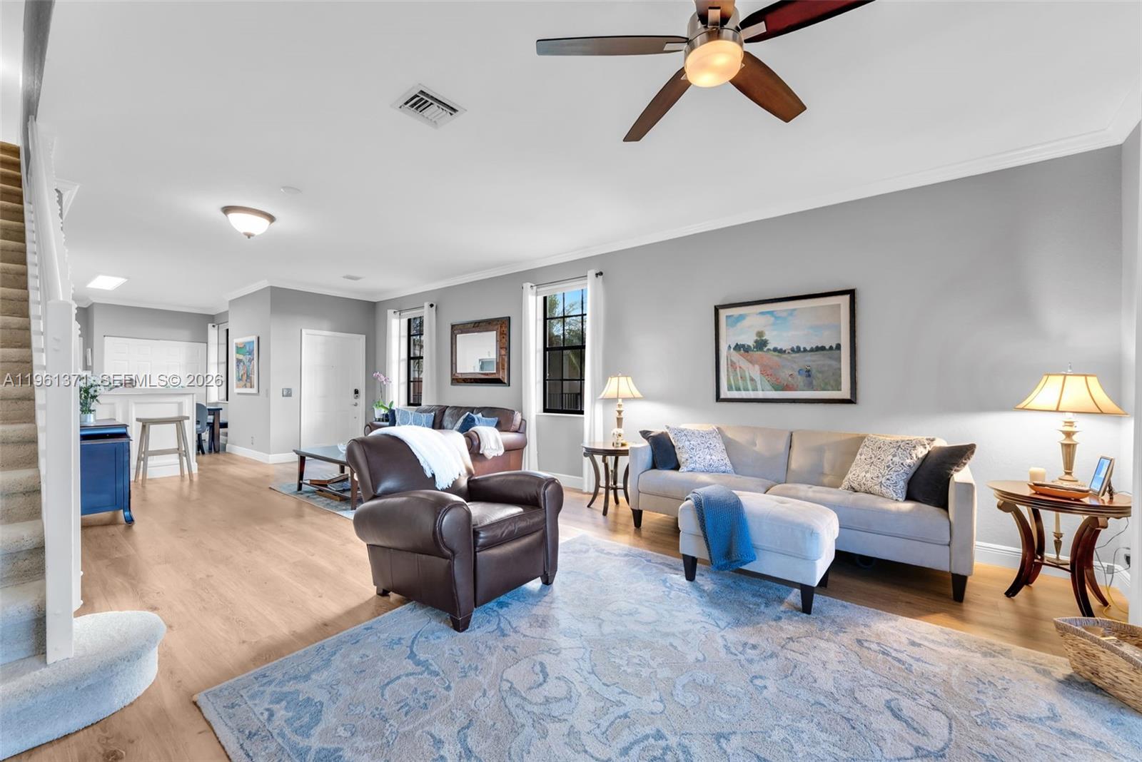 Beautifully updated 4-bedroom, 2.5-bath “Elite” floor plan offering 1,790 sq ft in highly desirable Weston with A+ rated schools. This corner unit features a rare private courtyard and peaceful garden views, creating the perfect setting for outdoor living and entertaining. The interior showcases a fully remodeled custom kitchen with extended maple cabinetry, oversized pantry storage, quartz countertops, Custom bar with LED lighting, premium appliances including quiet MIELE dishwasher, luxury vinyl flooring on the first floor, crown molding, and updated bathrooms. Major upgrades provide true peace of mind, including 2019 water heater, 2025 fresh interior paint, smart home Google Nest integration for the front door and A/C, UV air purification, updated plumbing and water line, newer refrigerator, Hunter fans, custom blinds, and more. 1-car garage with added shelving for extra storage. Move-in ready with modern finishes, functional layout, and low-maintenance living in one of Weston’s most sought-after communities with upcoming HOA improvements already funded. A rare opportunity combining privacy, views, and upgrades in an unbeatable location.