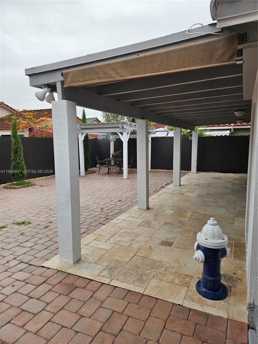 Back in the market. Closing was cancelled a few days before closing day with no fault to seller. Fully remodeled modern-looking single-family home in a quiet neighborhood featuring 3 bedrooms, 2 full bathrooms, and a covered carport on the side. NO HOA! All windows and doors have hurricane shutters for good protection. Front entry door with impact glass. The property boasts a good size, all paved backyard with a covered wood terrace adding up extra space, perfect for entertaining and outdoor dining. All travertine tile in the terrace and porch area. Metal fencing all around the house. All stainless-steel appliances, quartz counter tops. All bedrooms have waterproof laminate flooring, and custom-made closets. Tankless water heater for added efficiency. Excellent location, walking distance to newly built Herbert A. Ammos Middle school (ranked 22 in the State of Florida). Very close to Publix Plaza on 147th Ave, easy access to Turnpike, Miami Zoo, several parks just minutes away.