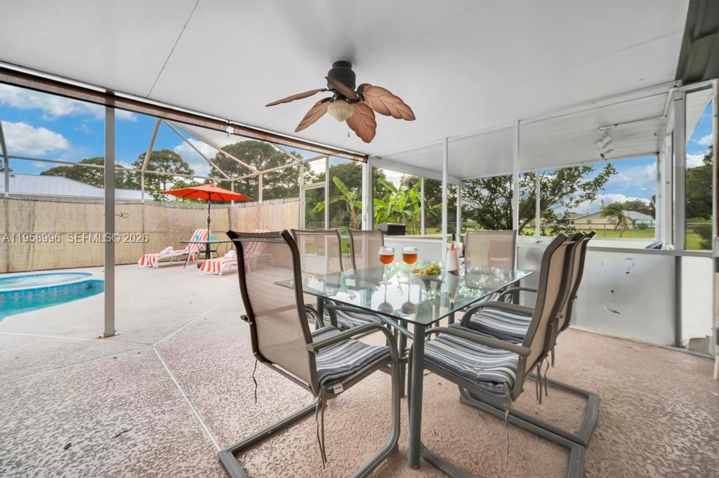 Short term Income-Producing Home on ½ Acre with Heated Pool & Open Views This unique Fort Pierce property offers privacy, space, and proven income potential. Situated on a ½-acre lot with open savannah views, the home features an enclosed in-ground pool with a heat-exchange heater (not solar), allowing for consistent and efficient heating. The property has been successfully operated as a short-term rental generating annual revenue (documentation available with contract), with existing bookings in place, offering immediate income opportunity for an investor or flexibility for an owner-occupant. With approximately 1,825 sq ft of living space, the home provides generous indoor and outdoor areas ideal for entertaining, extended stays, or long-term living. This property stands out for its oversized lot, heated pool, privacy, and documented income history. The expansive outdoor space offers room for future enhancements, storage, or recreational use. Ideal for buyers seeking a turnkey investment, second home with income, or a primary residence with upside potential.