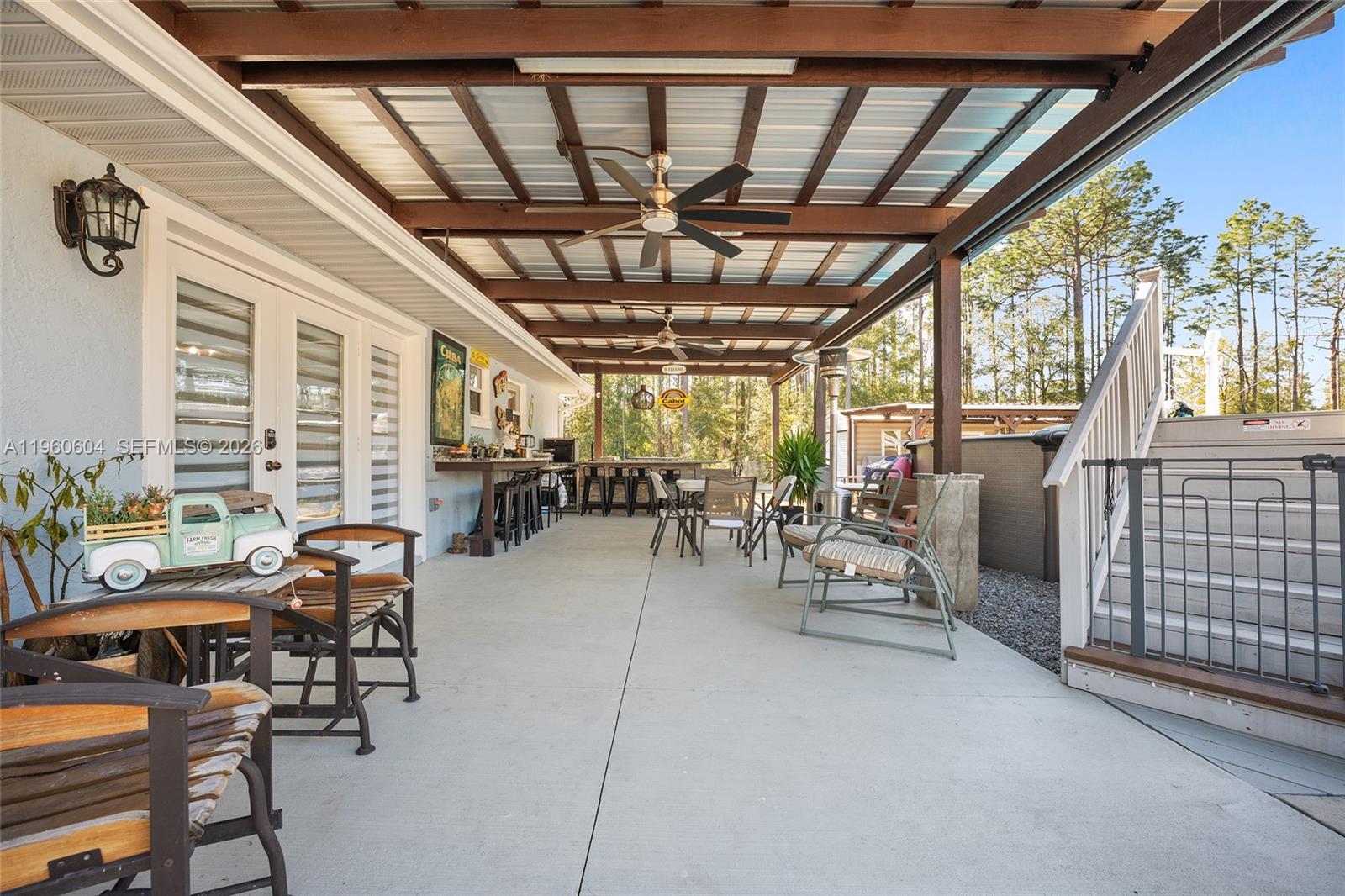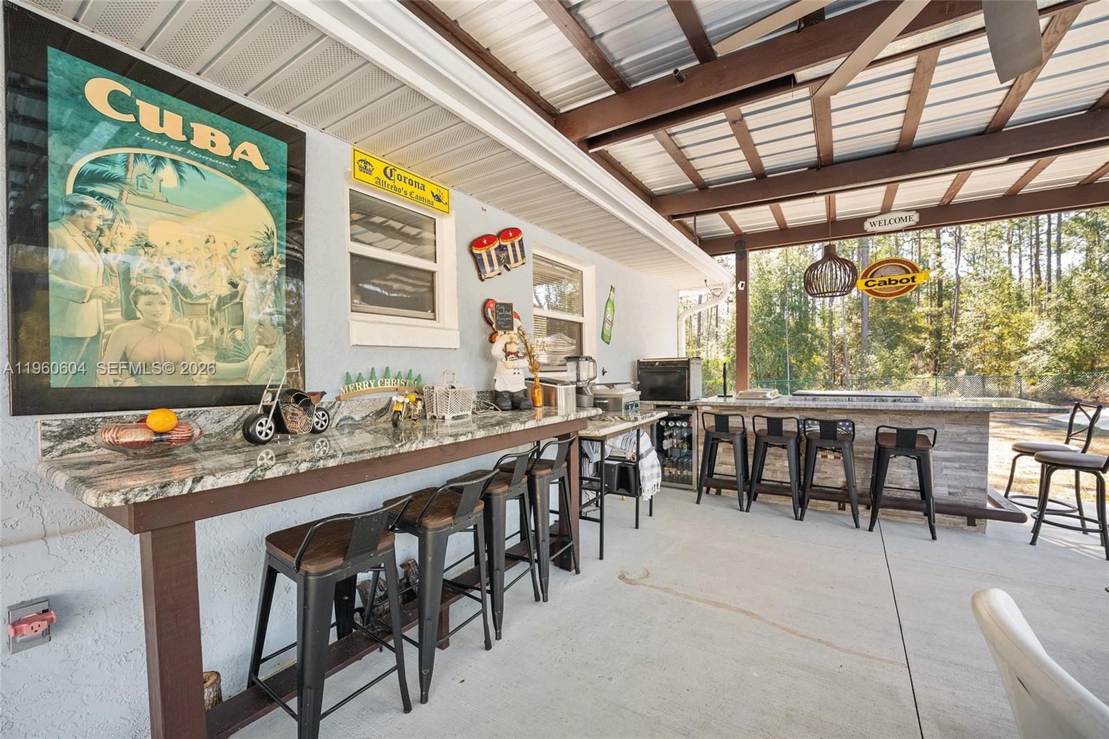 Welcome to your private Ocala retreat on nearly 1.5 acres.Perfectly located minutes from downtown Ocala, 10 minutes to the World Equestrian Center, near shopping and the Ocala airport, and under 15 minutes to I-75.This beautifully upgraded 3-bedroom, 2-bath home blends modern comfort with exceptional indoor-outdoor living in a peaceful setting. A bright open floor plan welcomes you, perfect for entertaining and every day life. With a large kitchen with granite countertops and generous prep space on center stage, sure to be a great gathering spaceThe primary suite offers a true escape with a large walk-in closet and a spa-inspired bath featuring dual vanities and a custom walk-in shower.Step outside to an entertainer’s paradise with two custom outdoor kitchens: a fully enclosed 15×10 kitchen with stove, ventilation, microwave, ice machine, and storage, plus an open-air kitchen with BBQ grill, flat-top burner, wine fridge, and lounge space beside the above-ground pool. Additional highlights include a large laundry room, two-car garage, RV parking with hookup for electricity and waste, lush landscaping, and full fencing for privacy. Major updates include a 2022 roof, 2023 water heater, and 2017 AC. With all high ticket items updated this property is turn key and ready to make memories.