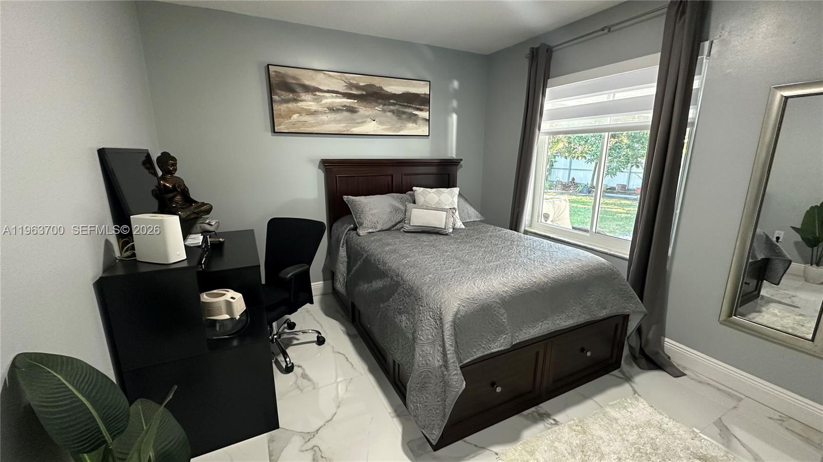 Stunning fully renovated corner home, upgraded with luxury finishes and no expense spared. This beautiful residence features 3 spacious bedrooms and 2 modern bathrooms, thoughtfully designed for both comfort and style. The kitchen showcases premium Samsung appliances and refined details throughout. This property is equipped with impact windows, offering enhanced security, energy efficiency, and peace of mind. Step outside to a breathtaking backyard retreat surrounded by fruit trees (avocado, papaya, mamey, and more) and enclosed by a premium, durable fence that secures the expansive lot. Enjoy a large 8x12 storage shed and ample space to park a boat or additional vehicles. A private well allows you to maintain the lush landscaping without increasing your water bill, while the low quarterly HOA fee of just $100 covers exterior lawn maintenance. Additional upgrades include a brand-new roof (2022), whole-house water filtration system, Ring security system with cameras (included), electric blinds with remote control, a cozy fireplace, and built-in Bluetooth audio in the bathrooms. This home offers the perfect balance of luxury, privacy, and tranquility — city living with a countryside feel. Showings require 12–24 hours’ notice. A rare opportunity you don’t want to miss.