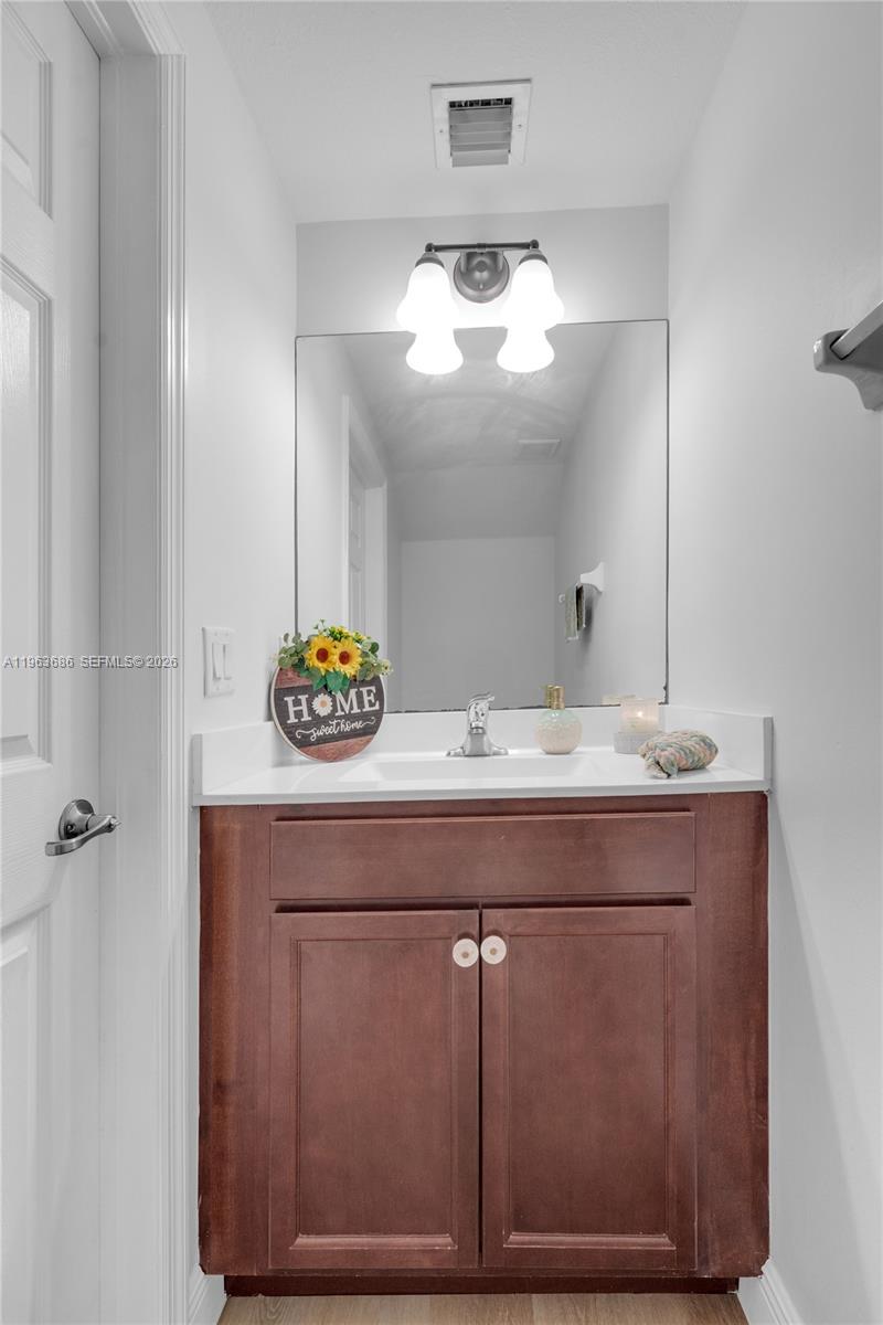 Highly sought after and rarely available, this spacious corner unit stands out with added privacy and abundant natural light from multiple exposures. Newly installed waterproof vinyl wood flooring flows throughout, complementing the open living and dining areas designed for everyday living and entertaining. The kitchen features wood cabinetry and stainless steel appliances with ample prep and storage space. Extra high ceilings upstairs and downstairs enhance the airy feel, while accordion shutters provide added convenience and protection. Bedrooms are generously sized with a functional layout that maximizes space for growing households. Two deeded parking spaces are directly in front of the unit for daily convenience, plus guest parking nearby for visiting family and friends. Located in a gated community with 24 7 rover security and resort style amenities including clubhouse, gym, salon, entertainment room, pool, basketball area, mini soccer field, and playground. Seller offering $5,000 credit toward an interest rate buy down or closing costs, adding immediate financial value! Schedule your tour today!
