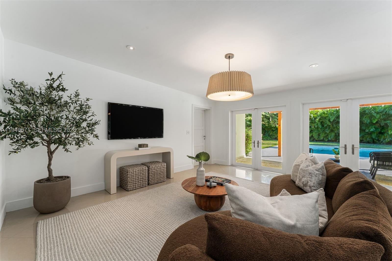 Set on a spacious half acre lot in Pinecrest, this light-filled 5BD 3BA single-story home offers privacy, comfort and seamless indoor-outdoor areas for play and relaxation. The European-enhanced kitchen is elegant and smart, featuring shaker-style wood cabinets with satin brass pulls & a white marble island opening to the family room. The wall of French doors and windows offers endless views of the pool & spacious gardens. The desirable split floor plan with porcelain flooring provides both space & privacy. The primary suite is a private retreat featuring a large walk-in closet, a well-appointed en-suite bath with walk-in shower and dual vanity sinks and access to the pool and veranda. Four additional split-plan bedrooms with 2 full baths offer comfortable accommodations for family and guests. There’s a separate laundry room and a den, suitable as a private office. Outdoors, the expansive, fenced backyard is framed by mature landscaping, including mango, avocado & lemon trees. The spacious veranda with full summer kitchen is ideal for gatherings and alfresco dining alongside the sparkling saline pool & natural coral stone patio. The separate pergola and hot tub provide additional areas to unwind and relax. Some of the highlights include a 2014 roof, 2015 impact doors and windows throughout, a large circular driveway with ample parking, and a storage shed. Perfectly set on a quiet interior Pinecrest tree-lined street close to neighborhood parks, shoppes and top-rated schools.