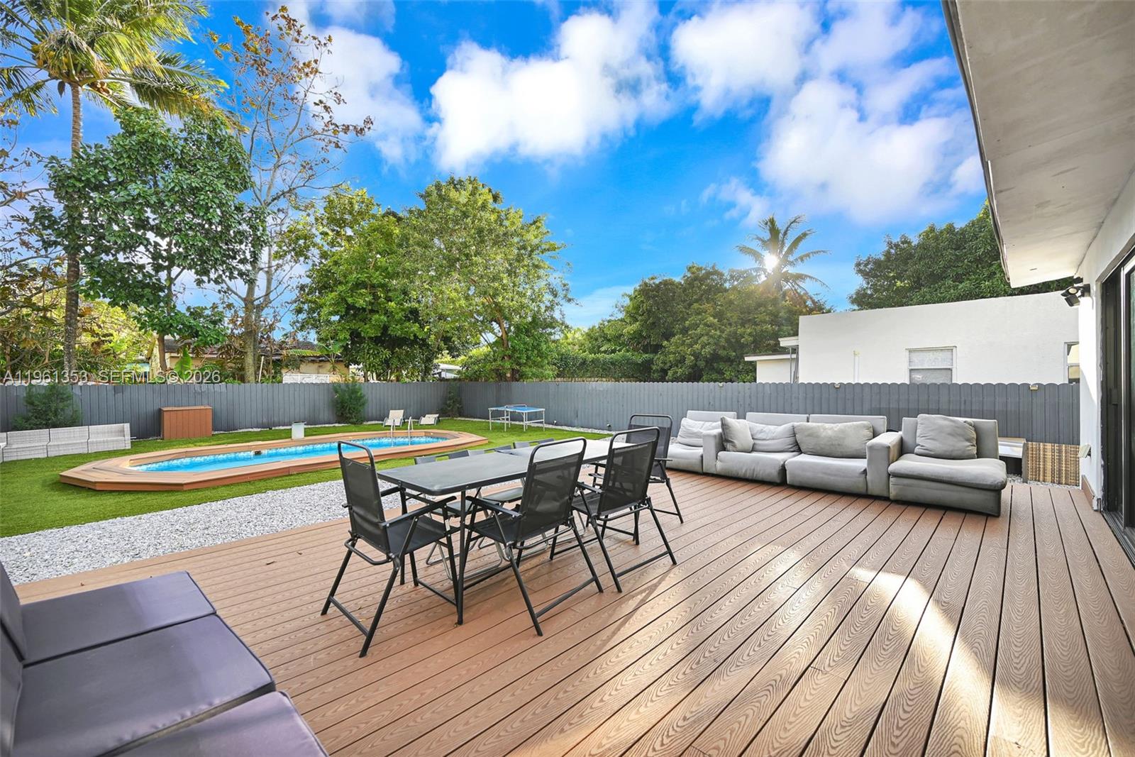 Stunning fully gut-renovated 4BR/3BA home with permits throughout. This property has been completely transformed with all major systems replaced, including a new roof, impact windows, updated electrical and plumbing, and a fully permitted pool—delivering the look, feel, and functionality of a brand-new home. The spacious open-concept layout showcases elegant tile flooring, beautifully designed modern bathrooms, and top-of-the-line Samsung stainless steel appliances. Every detail has been thoughtfully upgraded to combine style, comfort, and quality. Step outside to your own private, resort-style retreat featuring lush landscaping and a beautiful wood deck/balcony—perfect for entertaining or relaxing in total privacy. Unique zoning allows for Bed & Breakfast use, creating an exceptional opportunity for both investors and end users. Previously operated as a successful short-term rental, generating approximately $130K–$160K in gross annual income. Move-in ready and income-producing—this is a rare opportunity you don’t want to miss.