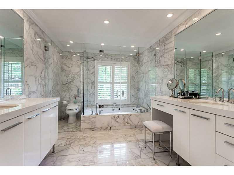 Golf Course living at it's finest. Enjoy this beautiful Riviera Golf Course home that was recently renovated to perfection in 2013. The gated home features exquisite finishes including marble bathrooms with Kohler fixtures, cascading showers, Viking appli ances, plantation shutters, custom built-in closets, high tech central wiring, security system with cameras, 12 ft. projector screen with 7.1 surround sound, dark blue mosaic tiled pool, new roof, hurricane impact windows and doors, and new A/C units.
