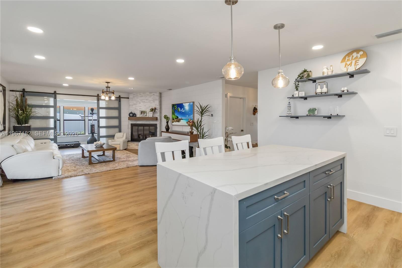 Completely remodeled within the last two years, this beautifully updated home in the highly sought-after Magnolia Village subdivision blends modern comfort with timeless charm. An open floor plan welcomes you in, highlighted by luxury vinyl flooring, recessed lighting throughout, and a cozy wood-burning fireplace that anchors the main living space. The heart of the home is the stylish kitchen, featuring stainless steel appliances and a large quartz island with built-in storage—perfect for everyday living and casual entertaining alike. The primary suite offers a serene retreat with a double-vanity bathroom, while the guest bedroom includes a thoughtfully designed closet reading nook, adding both function and character. A sunroom has been converted into a dedicated home gym, creating flexible extra space, while the screened lanai extends your living area outdoors. The large backyard is ideal for relaxing or hosting, complete with bistro lighting, an above-ground pool, and a storage shed for added convenience. The converted garage serves as private in-law quarters with its own entrance, laundry, and fenced outdoor area—ideal for multigenerational living or guests. Additional upgrades include a new AC system and a roof replaced in 2010. Located within walking distance to Lake Gandy and offering easy access to SR-414, SR-429, I-4, and Downtown Orlando, this move-in-ready home delivers comfort, versatility, and an exceptional location.