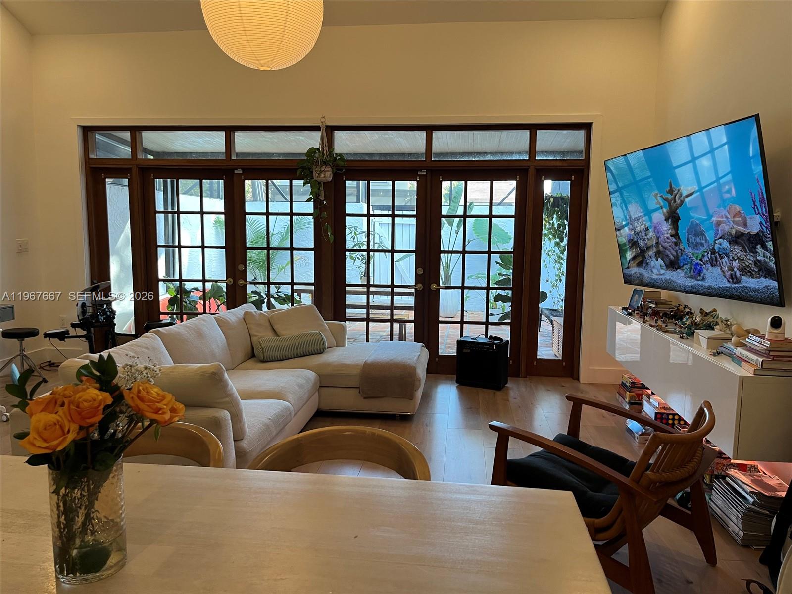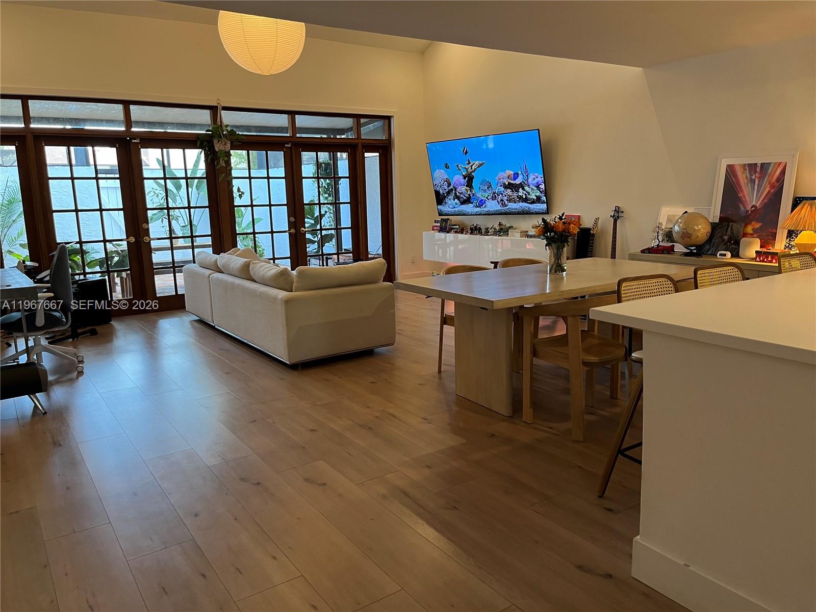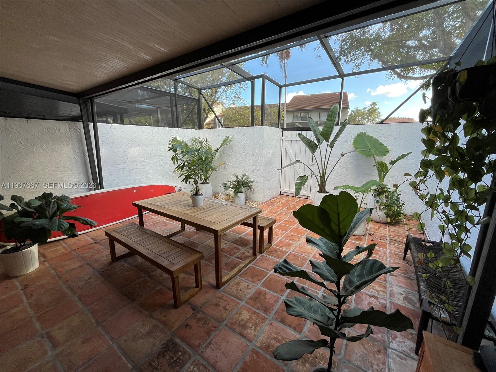 Welcome to Exclusive Calusa Point!. Amazing 3 bedroom, 2 bath townhouse impeccably remodeled filled with natural light and beautiful French doors opening to a large screened-in patio. The unit features open concept floor plan with high ceiling modern loft style main bedroom, wood plank floors throughout, new kitchen cabinets and appliances including an induction stove. Custom closets throughout including the entryway and plenty of storage. Recessed / dimmable lighting throughout. New custom patio screen is elevated, new front gate and new front trellis. One bedroom and full bath on main floor. The unit has new exterior paint since December. Community offers 24 hour security gated entrance, swimming pool, child playground, tennis courts and basketball court. Excellent location near major highways, schools and shopping malls. Lot and Block that will qualify for all financing. Plenty of guest parking. This unit offers many upgrades, won't last!