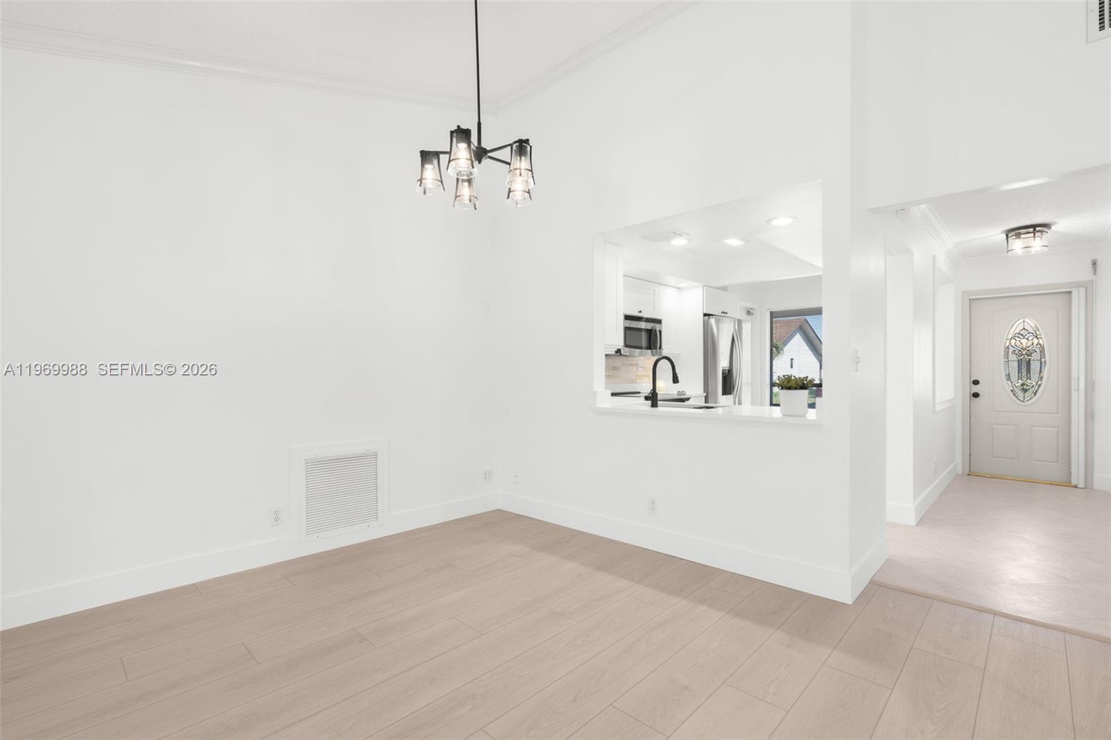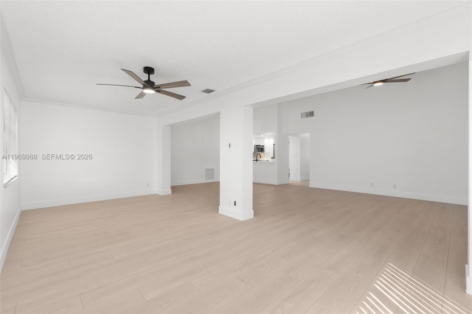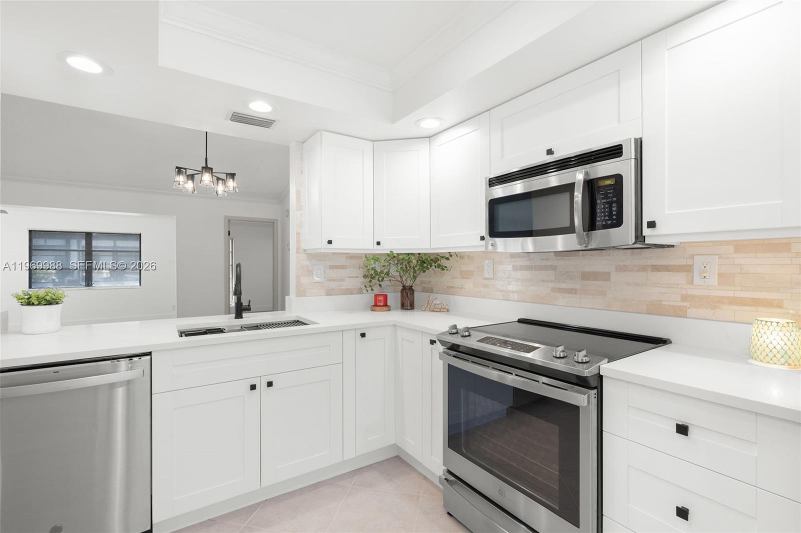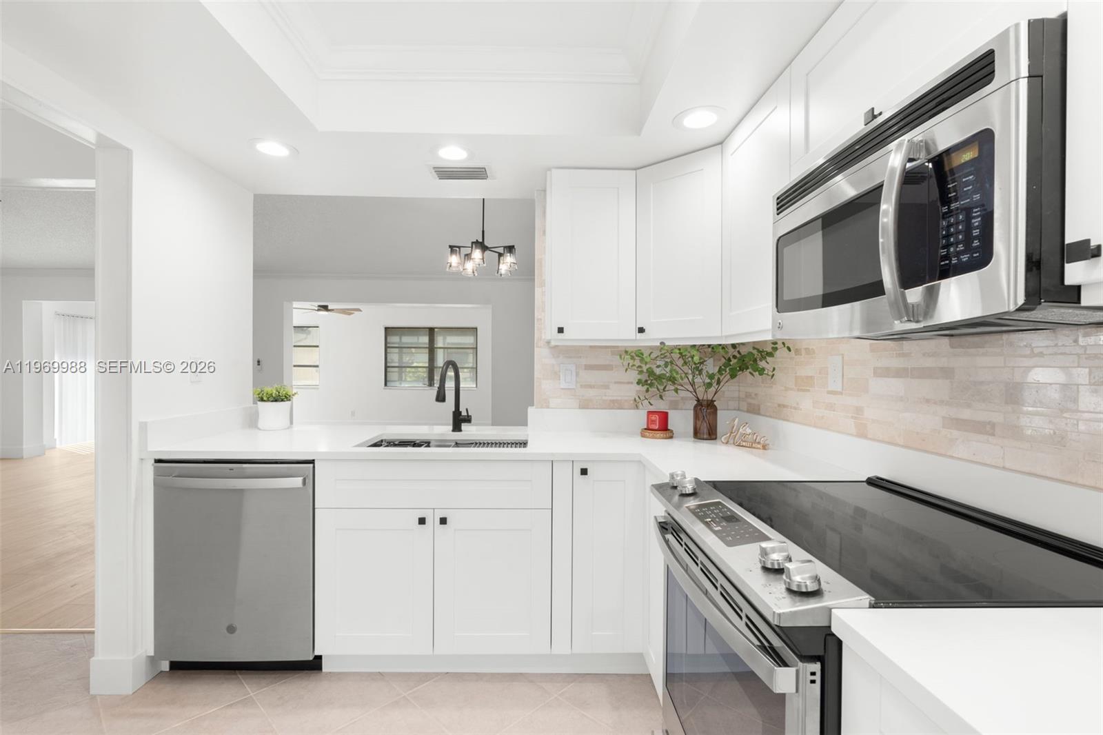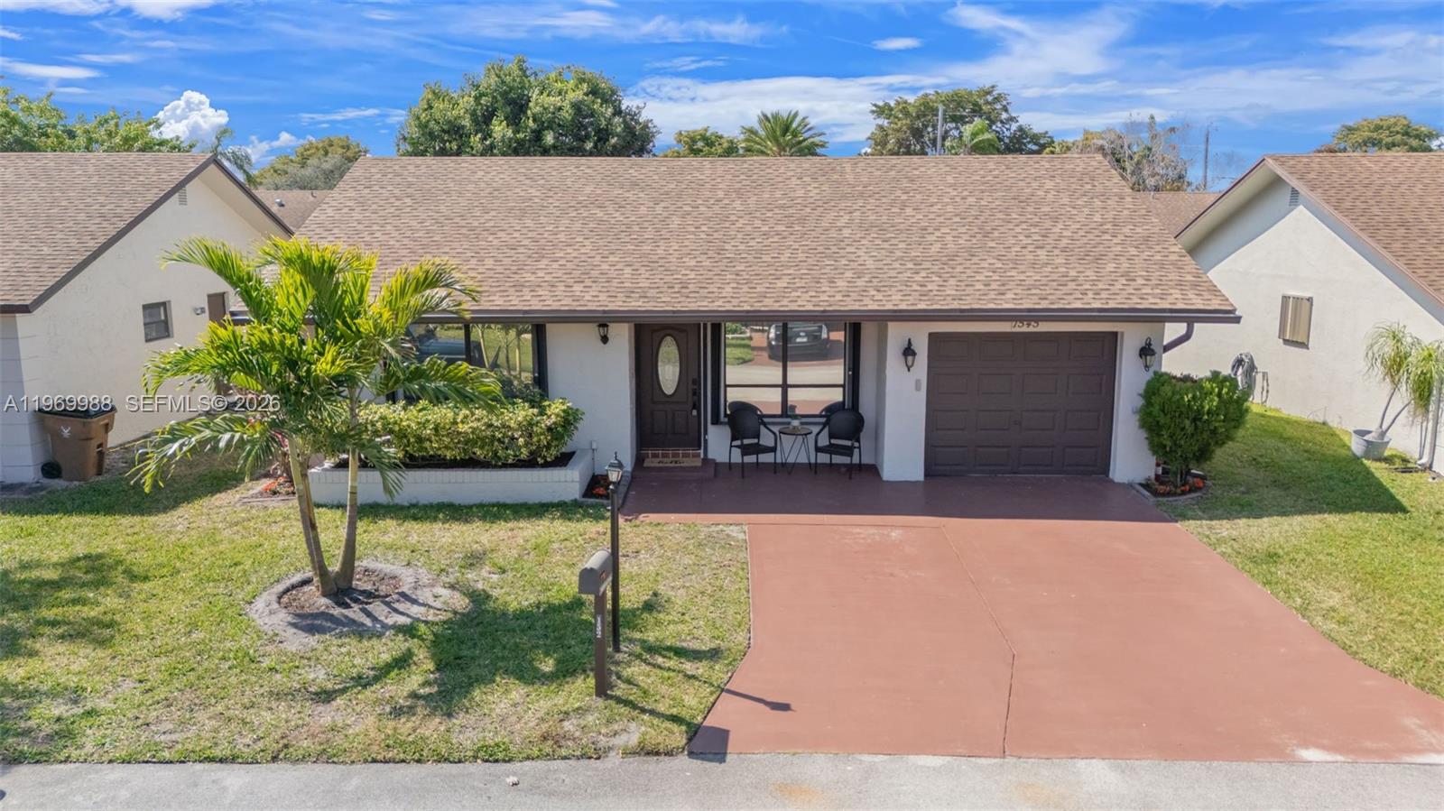 MOVE IN READY, updated 1400 plus square foot SINGLE FAMILY HOME with garage in a vibrant 55+ community. This is a split floor plan with 2 bedrooms and 2 bathrooms. The ROOF IS BRAND NEW. Enjoy this light bright white kitchen with quartz counter tops, tile backsplash, and stainless steel GE appliances. Make this roomy kitchen a spot for table and chairs to enjoy a morning coffee and a bite to eat. This home offers many living options. There is a living room and dining room, but also an additional space to make it your own. The floors are new luxury vinyl in neutral tones with 5 inch baseboards. New ceiling fans in each room and everything is freshly painted. All windows have hurricane protection. There is a tankless water heater so you never run out of hot water. The electric panel is new and AC is 2023. There is a clubhouse with activities or to rent out for your event. Large swimming pool and hot tub. There's a fitness room and tennis for your active lifestyle. Cable and internet, lawn care/sprinklers plus the amenities are included in the very low monthly fee of $225 per month. NO RENTING PER ASSOCIATION. This ideal location is close to I-95 and the Turnpike as well as shopping and house of worship. All types of financing available.