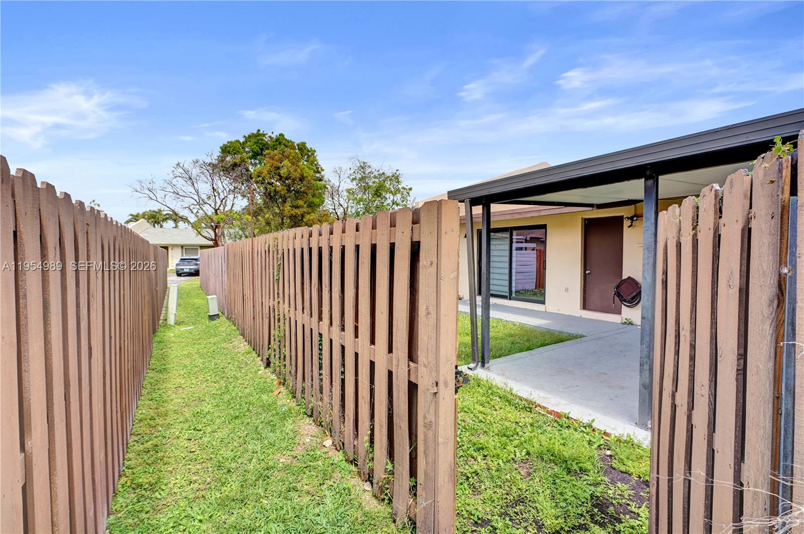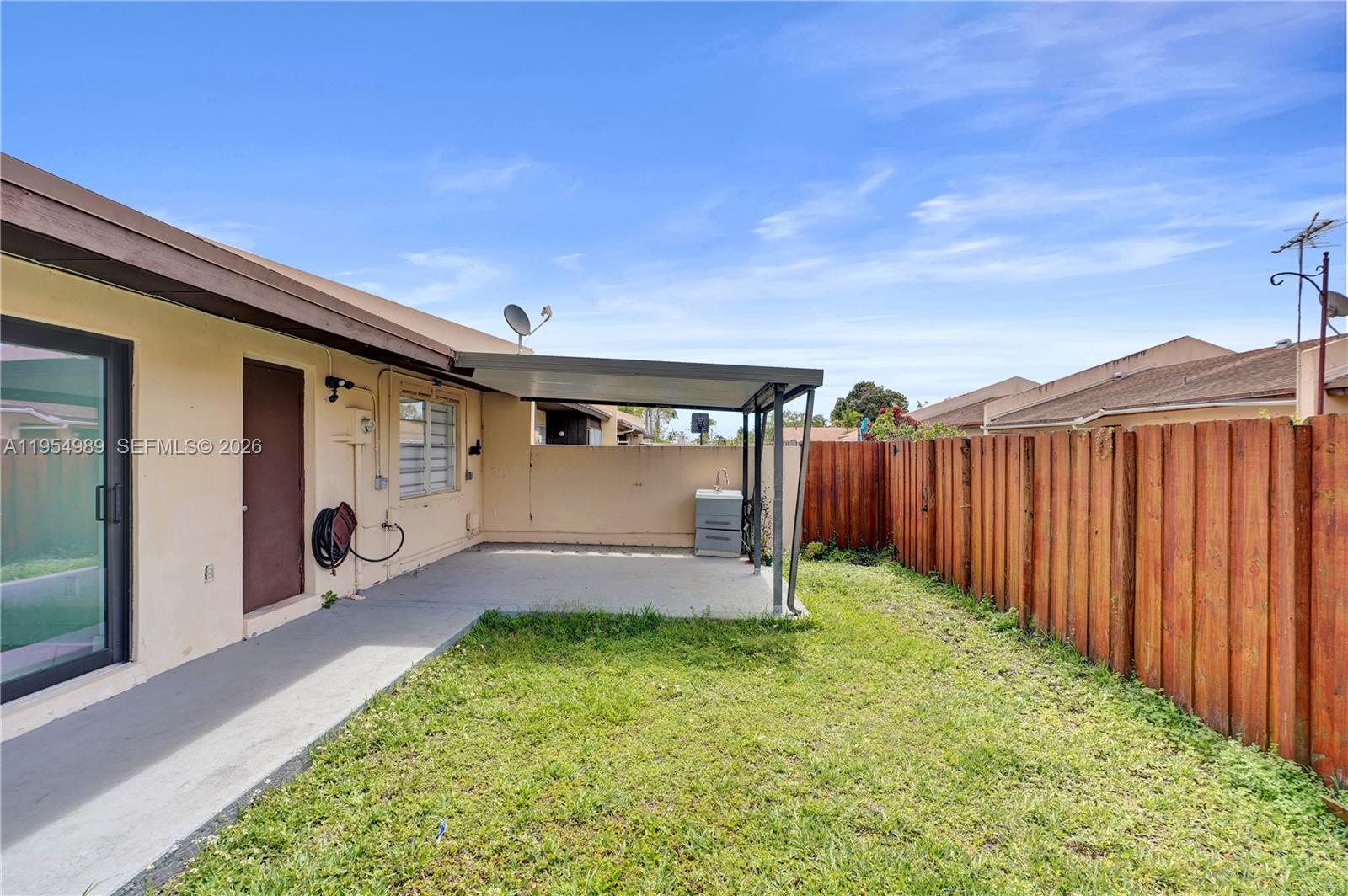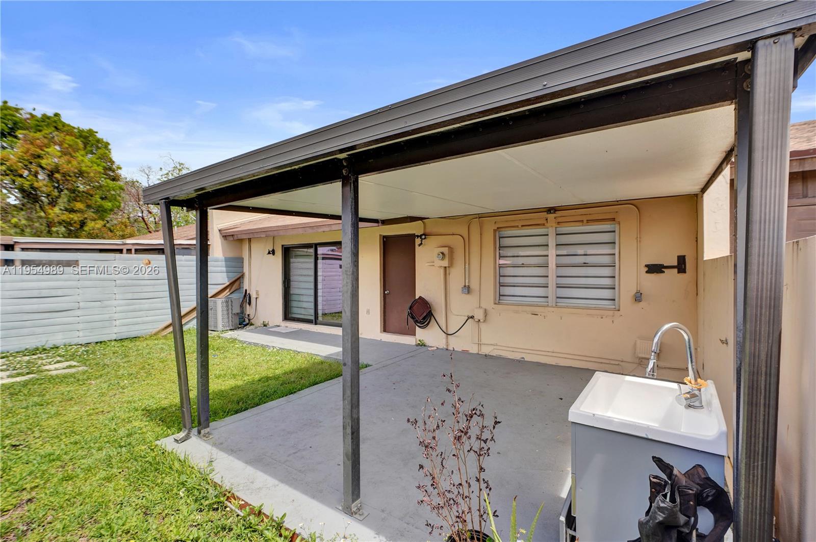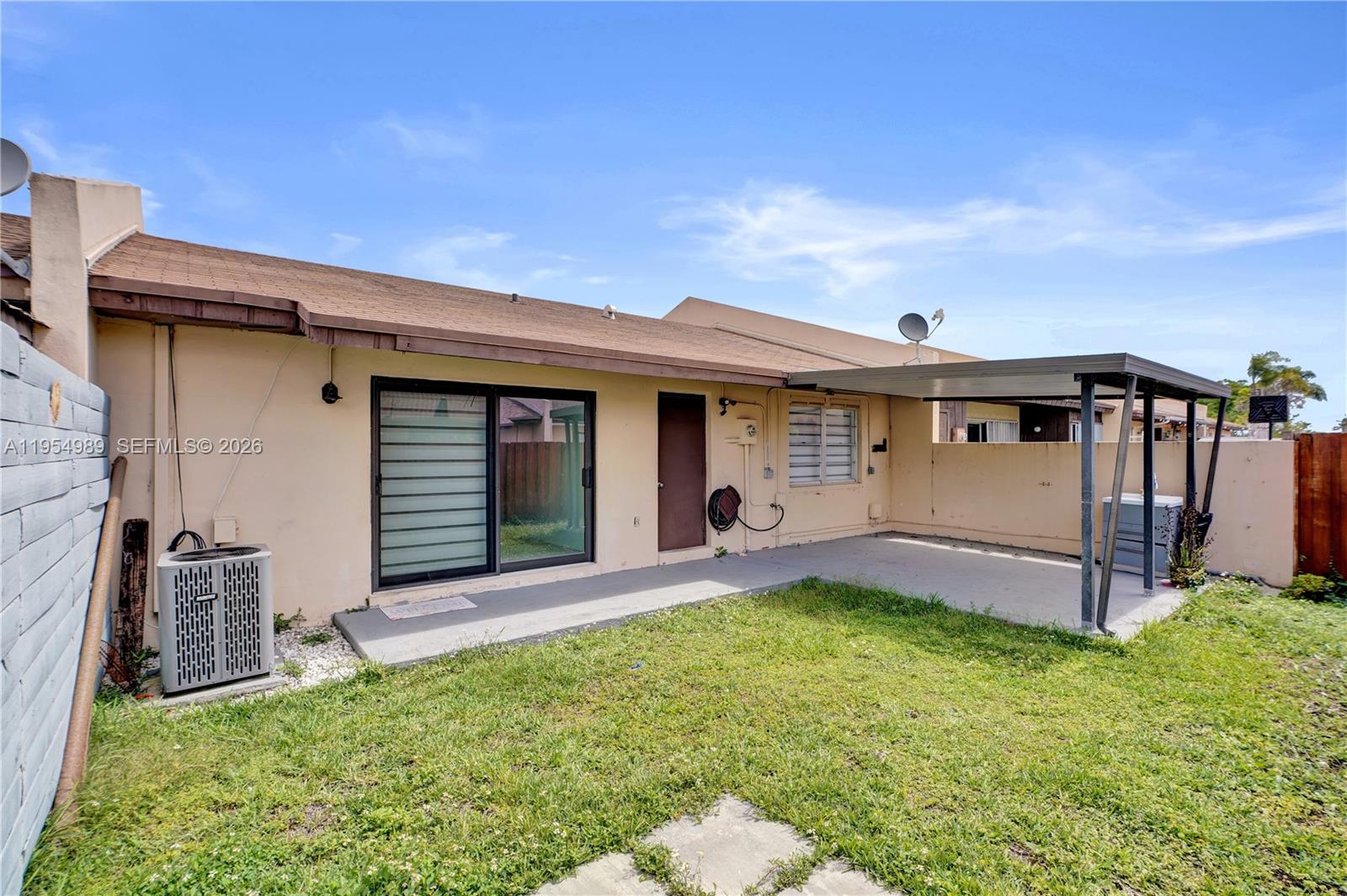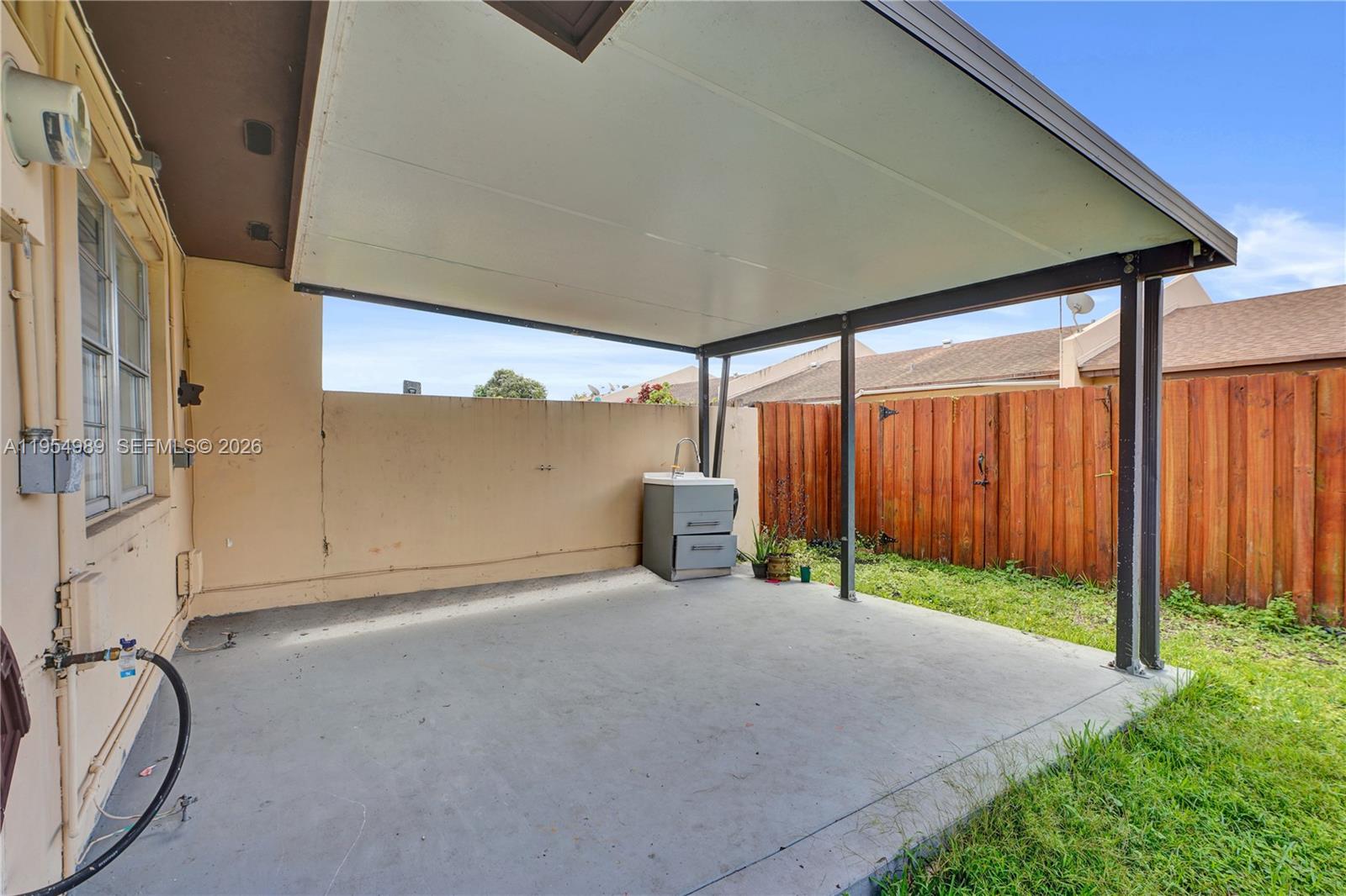 Centrally located unit in the desirable Devon Aire community, offering unbeatable convenience near major expressways, Miami Dade College, and a wide variety of major shopping stores and restaurants. The home features an updated bathroom, tiled living areas, and impact windows and door for added safety and efficiency. Washer and dryer are conveniently located in the unit. Enjoy convenient parking directly in front of the unit, plus ample guest parking throughout the community. The property also offers a private fenced backyard with a covered area—perfect for outdoor dining, relaxing, or entertaining. Low annual HOA and peaceful walking paths add to the appeal of this well-located home.