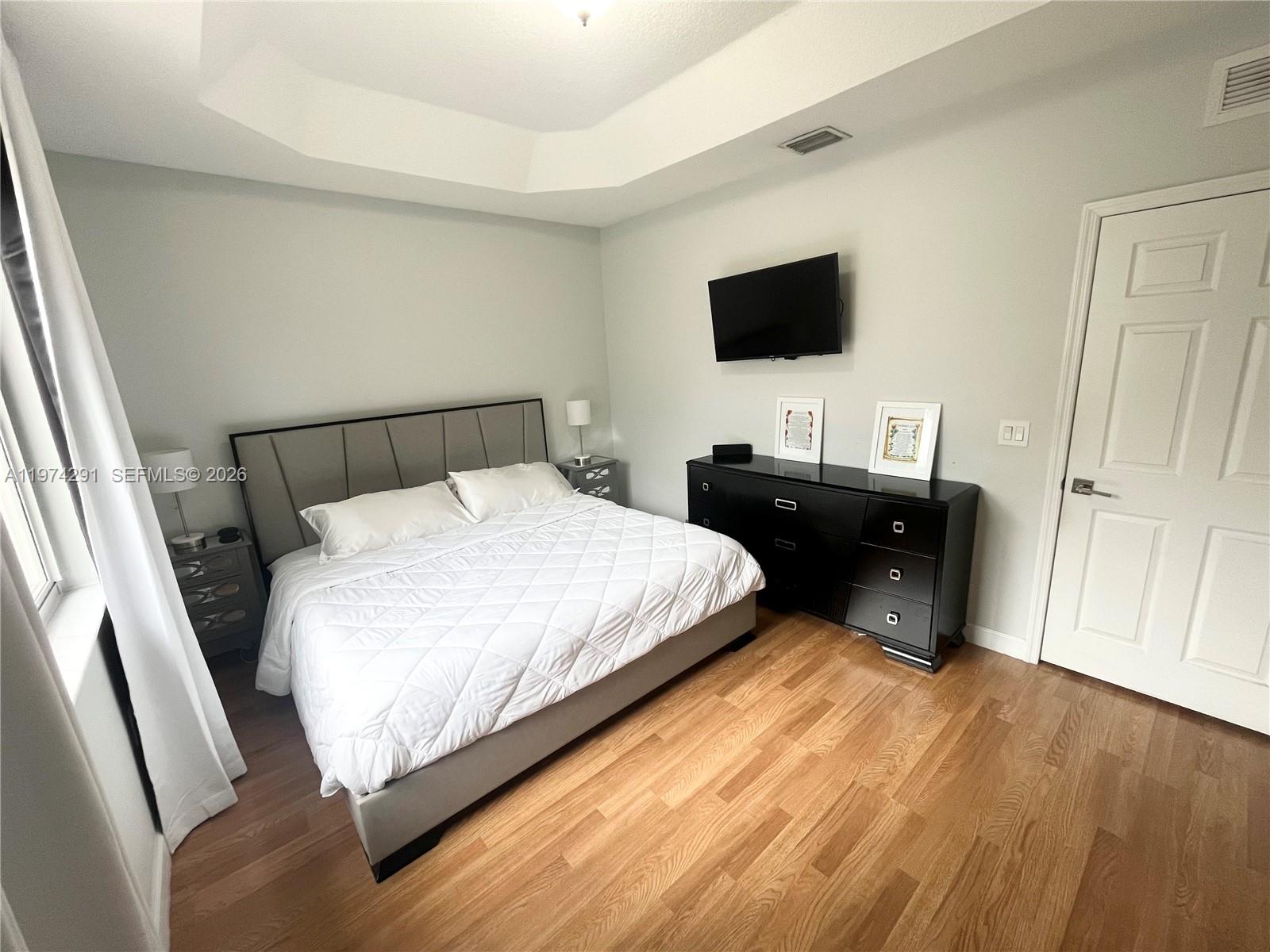 Welcome to this beautifully maintained, modern townhouse offering style, comfort, and functionality. The bright open-concept layout is enhanced by soaring ceilings, expansive upper windows, and sleek porcelain tile flooring that creates a light and airy atmosphere throughout the main living areas. The contemporary kitchen is a standout feature, showcasing white shaker-style cabinetry, quartz countertops, stainless steel appliances, and a stylish glass tile backsplash. The living and dining areas flow seamlessly together, creating an inviting open space. New impact windows and French doors. Located in a gated community, just minutes away from shopping centers, Publix, Walmart, restaurants, Baptist Hospital, Turnpike, and much more. This move-in ready townhouse is the perfect place to call home.