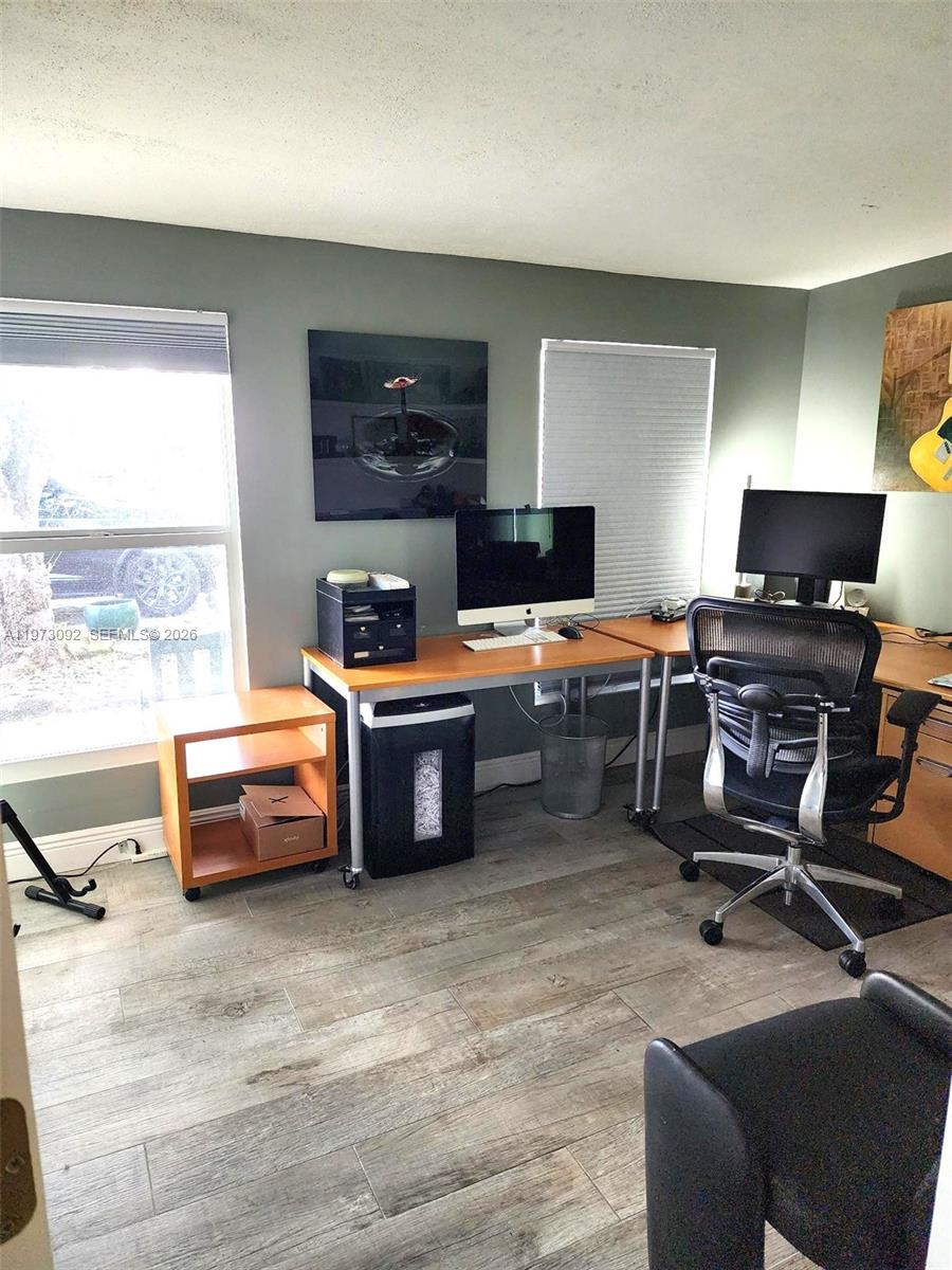 Own a piece of old Florida in desirable Dania Beach! This charming hidden gem is situated on a 9,100 square foot lot surrounded by mature foliage. This updated 2-bedroom, 1-bath single family home features a modern kitchen equipped w/black wood cabinetry, thick quartz countertops & quality Samsung appliances. 1-car garage w/manual door. Main living spaces have engineered bamboo plank flooring, while the 2nd bedroom offers porcelain tile. Updated bathroom has glass shower enclosure. Full-size GE washer/dryer are conveniently located just off the kitchen. Additional updates include hi-hats thru out, GE electric panel, a 2011 water heater, 2023 air conditioning system w/UV light & Nest Thermostat. The flat tar & gravel roof was replaced 2018, and the property benefits from city water—no septic system. Front exterior is pre-wired for landscape lighting. The home includes a spacious, fenced backyard as well as a storage shed. Irrigation is provided by a sprinkler system connected to the main line (city water) which is sold AS IS. With no HOA restrictions, there is ample space for a boat, RV, work truck, jet skis + more! Situated just minutes from major highways, Beaches, coastal amenities, Hard Rock Hotel, Casino's, Fort Lauderdale Airport, shopping, dining. Public transportation down the street. This property presents an excellent opportunity for first-time buyers or investors seeking a prime location. Active contract with Terminix in place. PROPERTY SOLD AS IS!