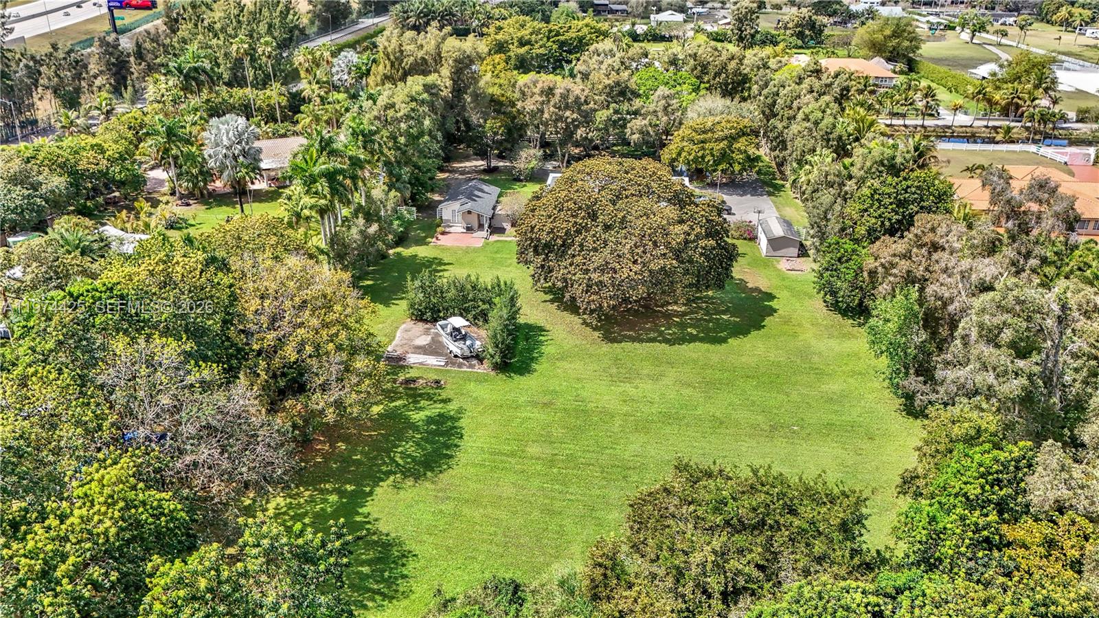 Private ranch retreat nestled on 2.5 acres, offering a rare blend of space, tranquility, and versatility within the city. The main residence features 3 generously sized bedrooms and, 2.5 Bath, perfectly convertible to 3 Full Bath. Living and dining areas open seamlessly to the garden, creating an airy atmosphere filled with natural light and serene views. The patio is elegantly finished in marble travertine, providing a refined outdoor space ideal for entertaining. The expansive backyard blends beautifully with nature, and a mature tree shades a generous open area with excellent potential for planting, gardening, or accommodating horses. A fully equipped guest house features 1 Bed and 1 Bath, Washer and Dryer inside the unit, offers complete independence and comfort — perfect for an extended family or as an income-producing rental opportunity. Additional features include impact windows (2025), new roof (2024), A/C (2019), solar panels (2020), a 3-car garage, a dedicated utility/storage room, and a septic tank system. Major upgrades provide peace of mind and long-term value. This unique ranch-style property offers the feel of country living while remaining conveniently located in Miramar with quick and easy access to Interstate 75.