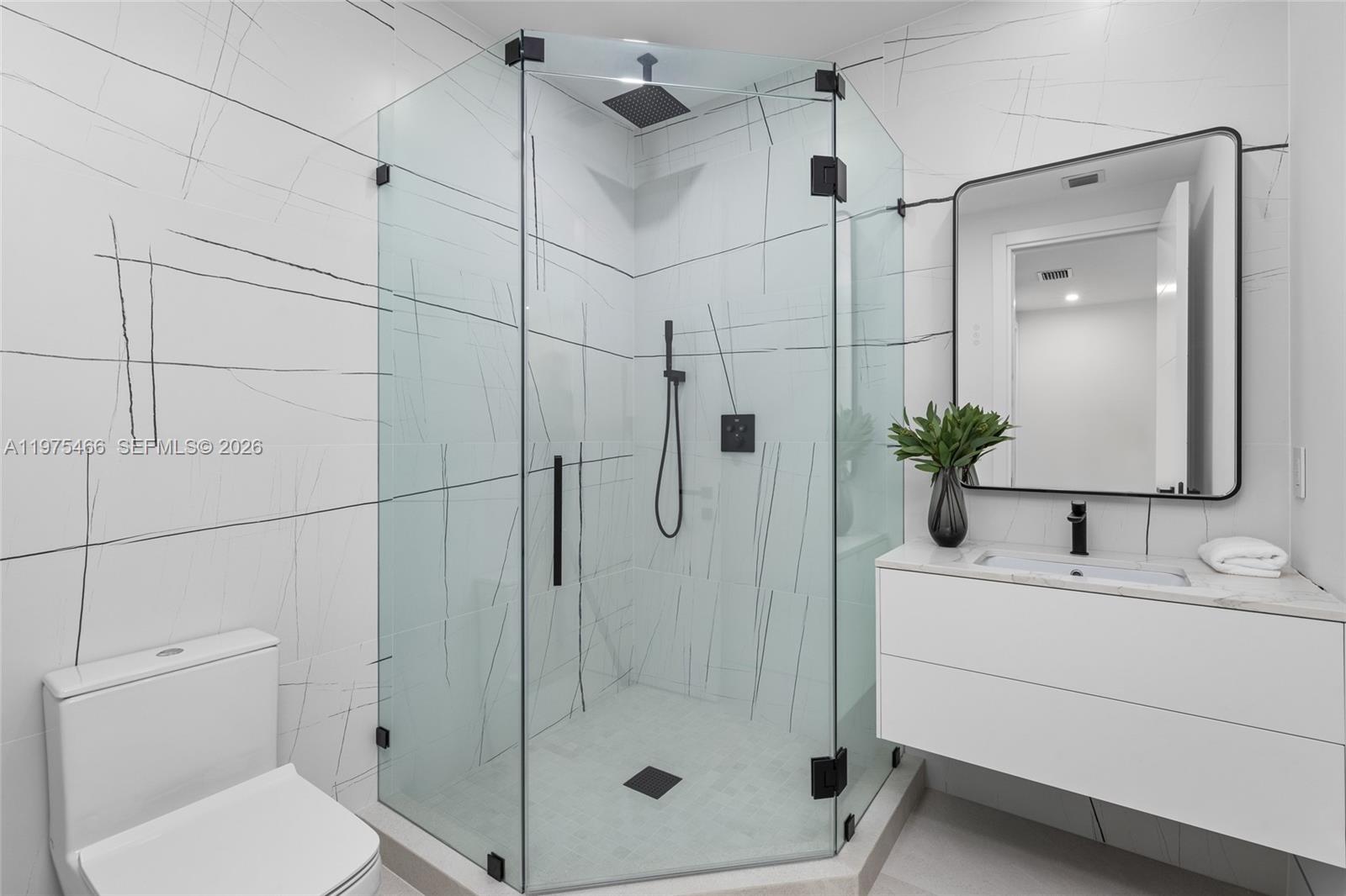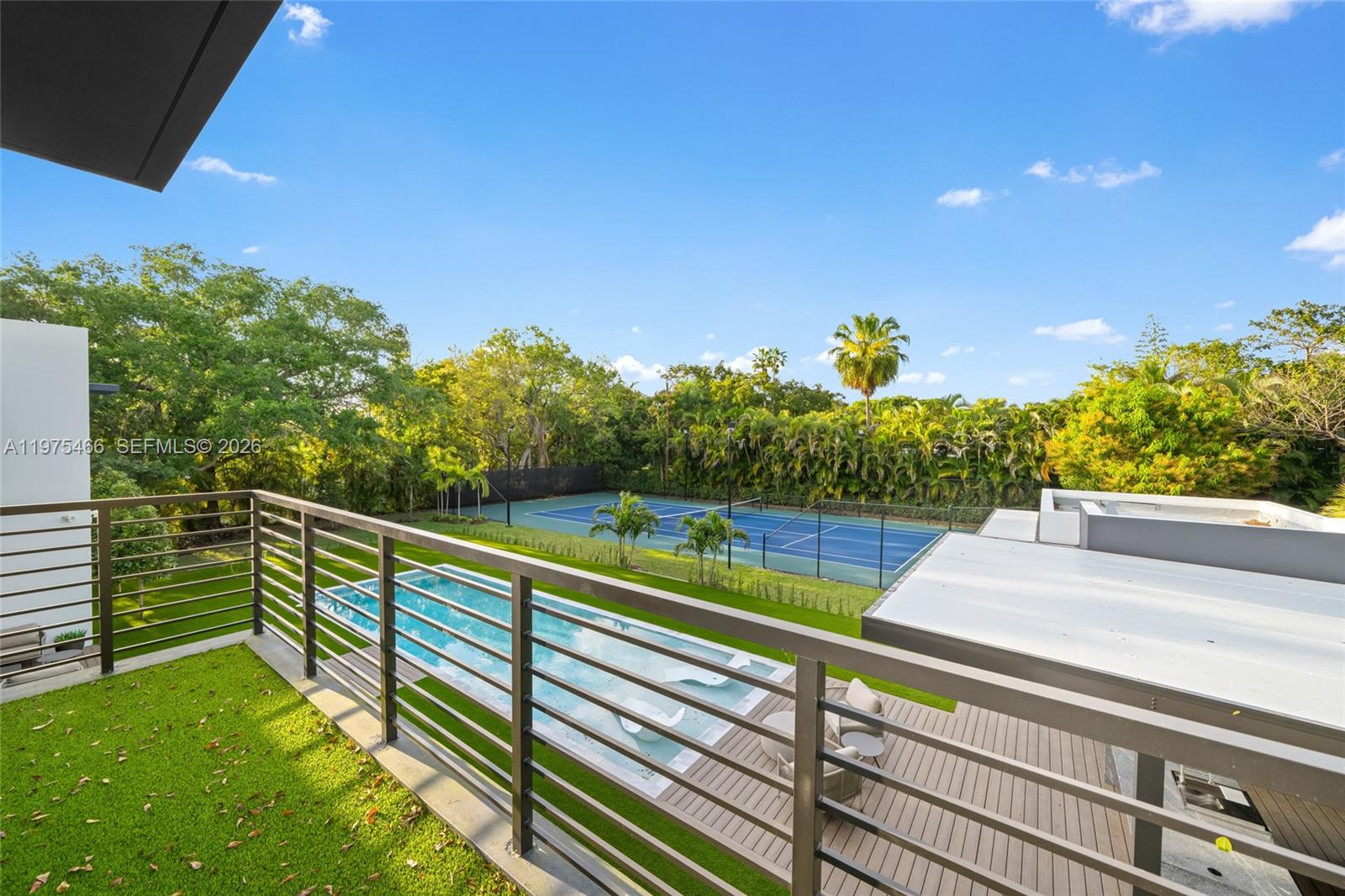 Welcome to a stunning new luxury home in the heart of Pinecrest. This expansive estate offers 8,673 sqft of living space with 7 beds and 7.5 baths in the main house, and a 1/1 guest house. Enter via a floating bridge flanked by water features, leading to elegant interiors with hardwood and tile floors, custom lighting, and a chef’s kitchen featuring premium appliances. The primary suite includes a custom walk-in closet, marble-clad bath, and a hidden safe room. A concealed media room adds flexible space for a theater, studio, or playroom. Additional features include a wine cellar area, elevator shaft, laundry room, and a private backyard with a pool, lighted tennis court, 3 balconies, and lush landscaping with fruit trees. This extraordinary home offers the ultimate in luxury and privacy.