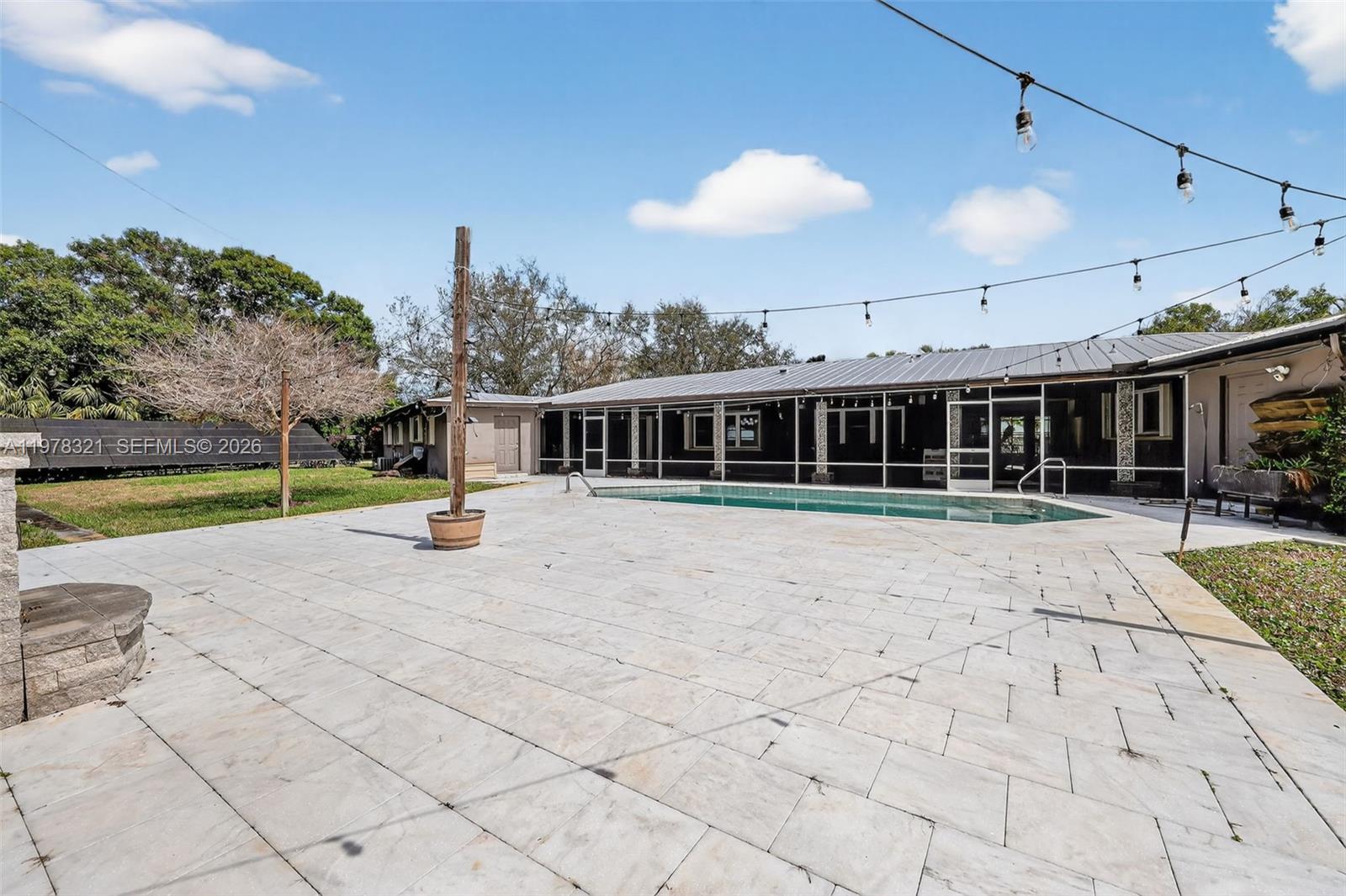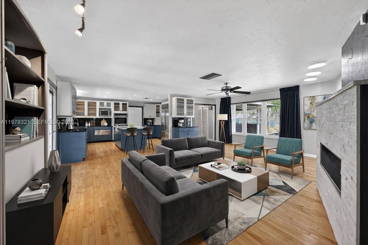 This exceptional 4150 Sq. Ft estate-style home sits on a spacious 0.85-acre lot and has been beautifully renovated throughout. The property features a newer metal roof and accordion shutters, providing both durability and peace of mind. The updated kitchen is designed for both functionality and style, featuring a double oven, contemporary porcelain induction range top, and a premium Sub-Zero refrigerator. Step outside to an elegant pool area with a newly finished stone patio, perfect for entertaining and hosting outdoor gatherings. A major highlight of the property is the solar panel system, which powers the entire home at virtually no cost. The system also supports an 80-gallon hot water heater, improving energy efficiency even further. Additional features include: A private office off the primary bedroom. Updated bathrooms with modern finishes. A circular driveway with a porte cochere, providing ample space for multiple vehicles of any size. SOME Areas are Virtually Staged