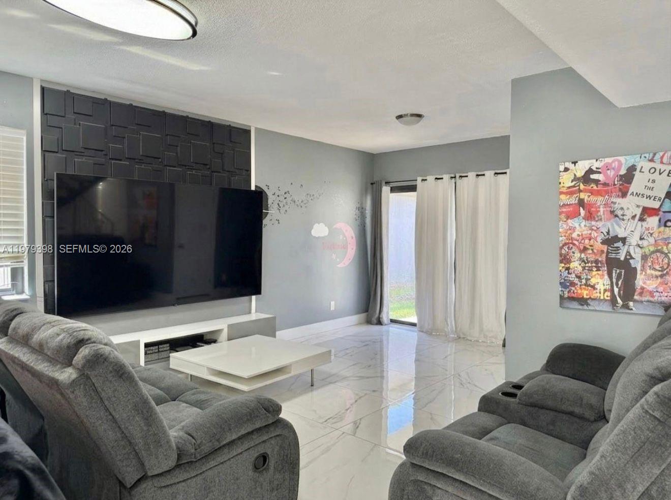 Beautiful single family home, fully remodeled and NO ASSOCIATION. This property features 4 Bed and 2.5 Bath, additional Garage - laundry room can be converted for an in-laws separate room or business office. Open floor plan with large living, dining, family, and spacious kitchen with quartz countertops and stainless steel appliances, porcelain tiled floor throughout the property. Updated in 2023 with new roof, impact windows and doors and AC. Ample backyard with pergola and space for a pool, convenient separate exit door in the patio allowing walking distance access to supermarkets and shops, near Sugarwood Park, Claude Pepper Elementary. Neat property, move in ready. No HOA.
