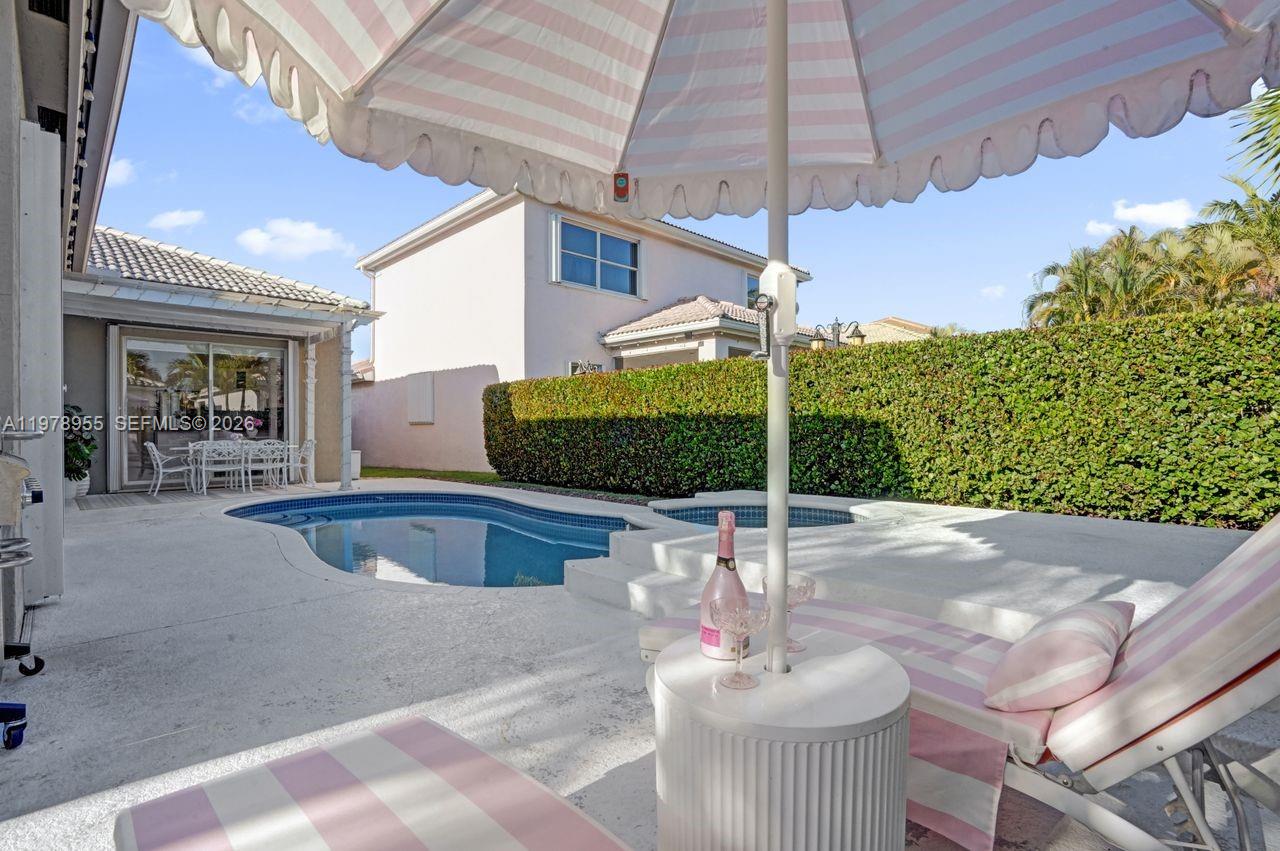 Welcome to Juniper Glen, a quiet gated community ideally located between Margate, Coral Springs, & Coconut Creek—minutes from restaurants, shopping, grocery stores, & schools, all with a low HOA. Step inside this spacious home with over 1,600 sqft, larger than most in its class, featuring two oversized bedrooms and an open, airy layout. Natural light pours through multiple sliding glass doors that frame the sparkling pool, creating a courtyard-style feel visible from the kitchen, family room, and primary suite. The backyard is your private oasis with a large pool & heated spa, space for lounge chairs, a grill, & a pergola perfect for outdoor dining & entertaining year-round. Accordion shutters provide added protection and peace of mind. Inside, enjoy tall ceilings, a spacious dining area, family room, & breakfast nook overlooking the pool. The remodeled kitchen features quartz counters and SS appliances. The home has been freshly painted, popcorn ceilings removed, with elegant new light fixtures and door hardware throughout. The primary suite welcomes you through double doors with pool views and a large walk-in closet. Indulge in the fully remodeled spa-like bath with double sinks, walk-in shower, & LED mirror. The second bedroom features its own remodeled en-suite bath and walk-in closet. Additional highlights include a laundry room, one-car garage w/ new EV charger outlet, and driveway parking for two cars—making this home as practical as it is inviting.