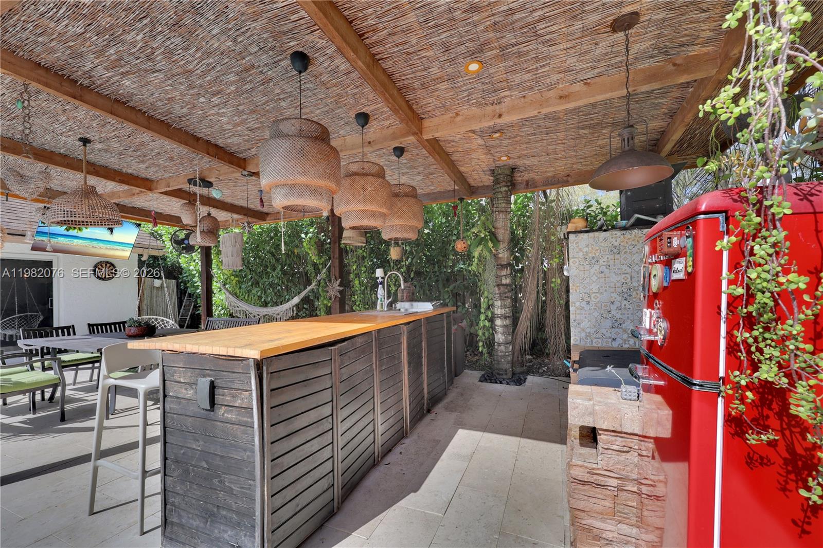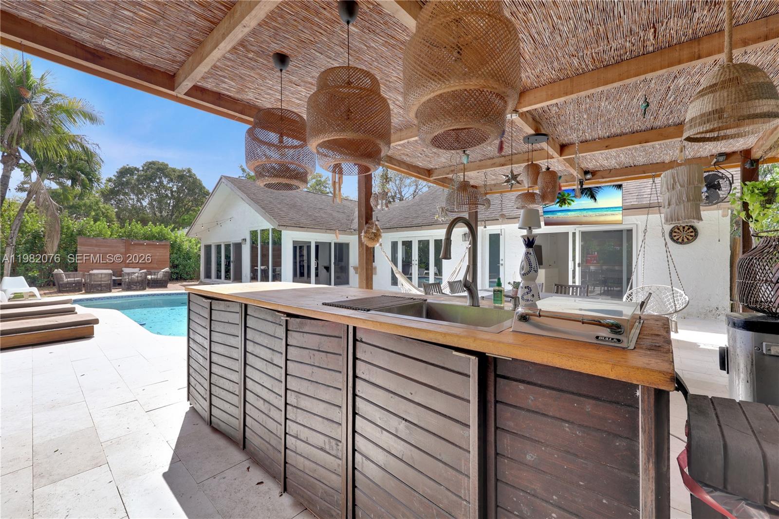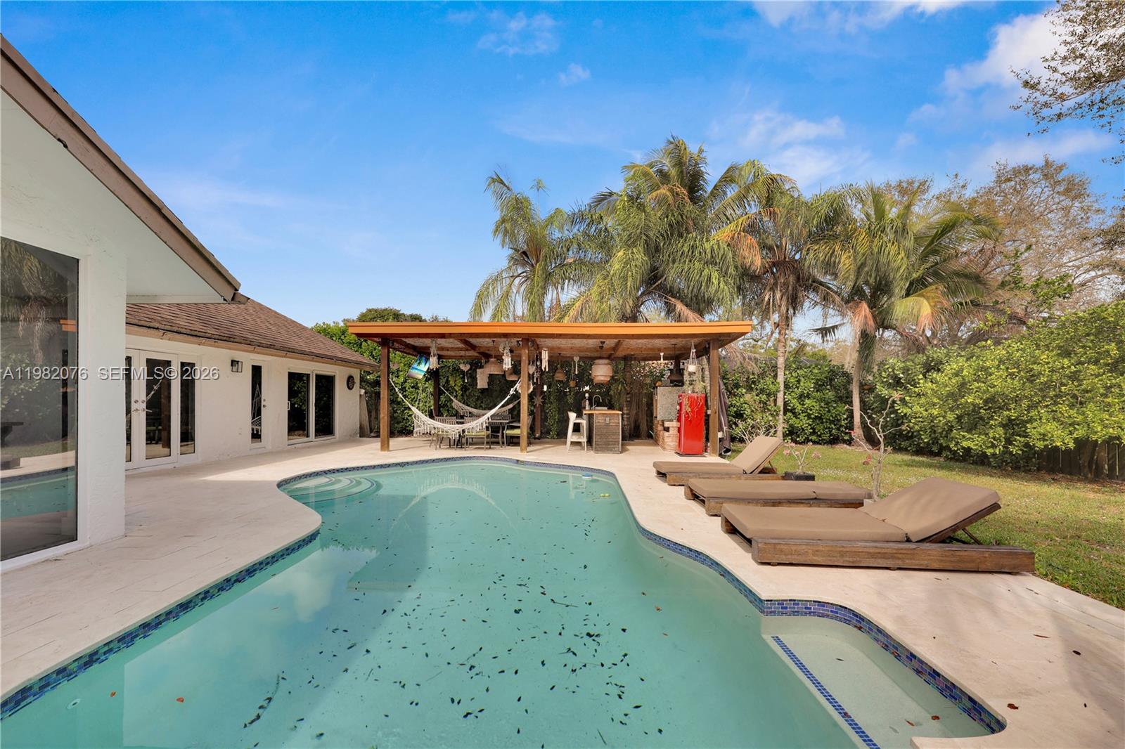 3 Bedrooms 2 Bathrooms Oversized 10,400+ sq ft lot Resort-style swimming pool Outdoor pergola entertainment lounge Custom outdoor bar Spa / hot tub ? Open floor plan with vaulted ceilings ? Large sliding glass doors to pool area ? Modern flooring throughout ? Updated bathrooms ? Located in Rock Creek – Cooper City