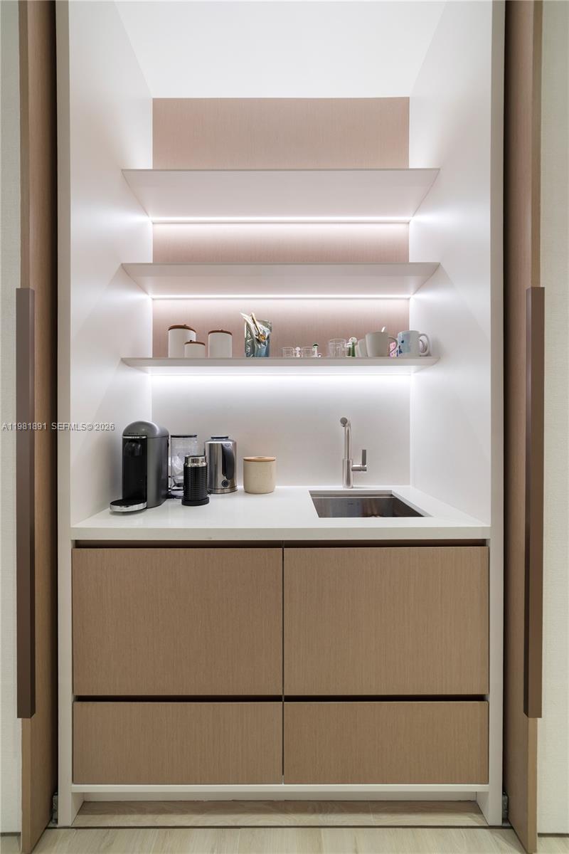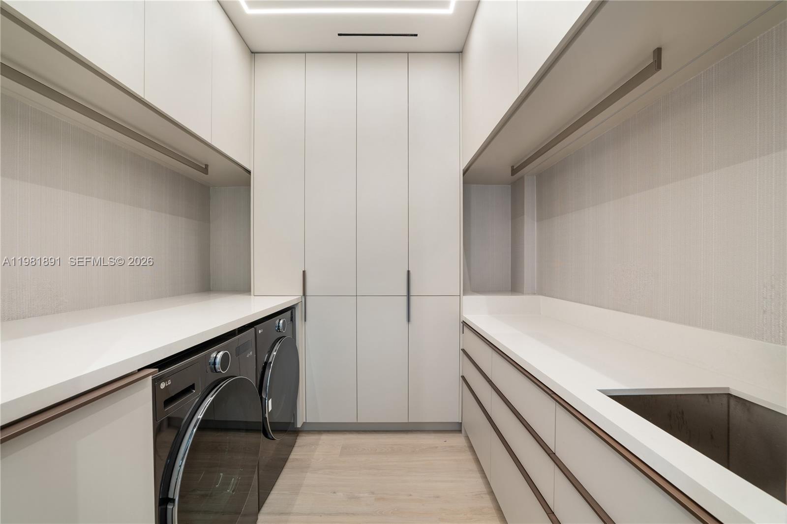 Located in the exclusive gated enclave of Villa Flora in Williams Island, this architectural masterpiece has undergone a meticulous transformation by Troy Dean Homes. With approx. 6,400sf of exquisitely finished interiors, the 6bd, 5ba/3.5ba residence has been thoughtfully redesigned, from bespoke custom millwork and handcrafted fabrications to seamless stone installations and integrated lighting. A multi-level sculptural staircase serves as the focal point upon entry. Warm white oak accents and hand-finished surfaces add depth and texture, creating a cohesive interior that feels both timeless and sophisticated. The chef’s kitchen with top-of-the line appliances and generously appointed living and dining areas on the 1st floor are accessible to the waterfront backyard offering a host of entertaining options. A heated pool/jacuzzi, outdoor kitchen/BBQ and built-in TV provide the ultimate outdoor refuge with marina access. Ascend to the 2nd floor via elevator or illuminated stairs to reach the informal study, two en-suite guest bedrooms and an idyllic Primary Suite complete with two grand walk-in closets, a spa-like bathroom, kitchenette and private patio overlooking the water. Top floor includes expansive family room, two bedrooms, an office/study, fitness room and state-of-the art movie theater. Crestron smart home technology, built-in floor to ceiling wine wall and an air conditioned two-car garage are just some of the key features that make this a one-of-a kind offering.