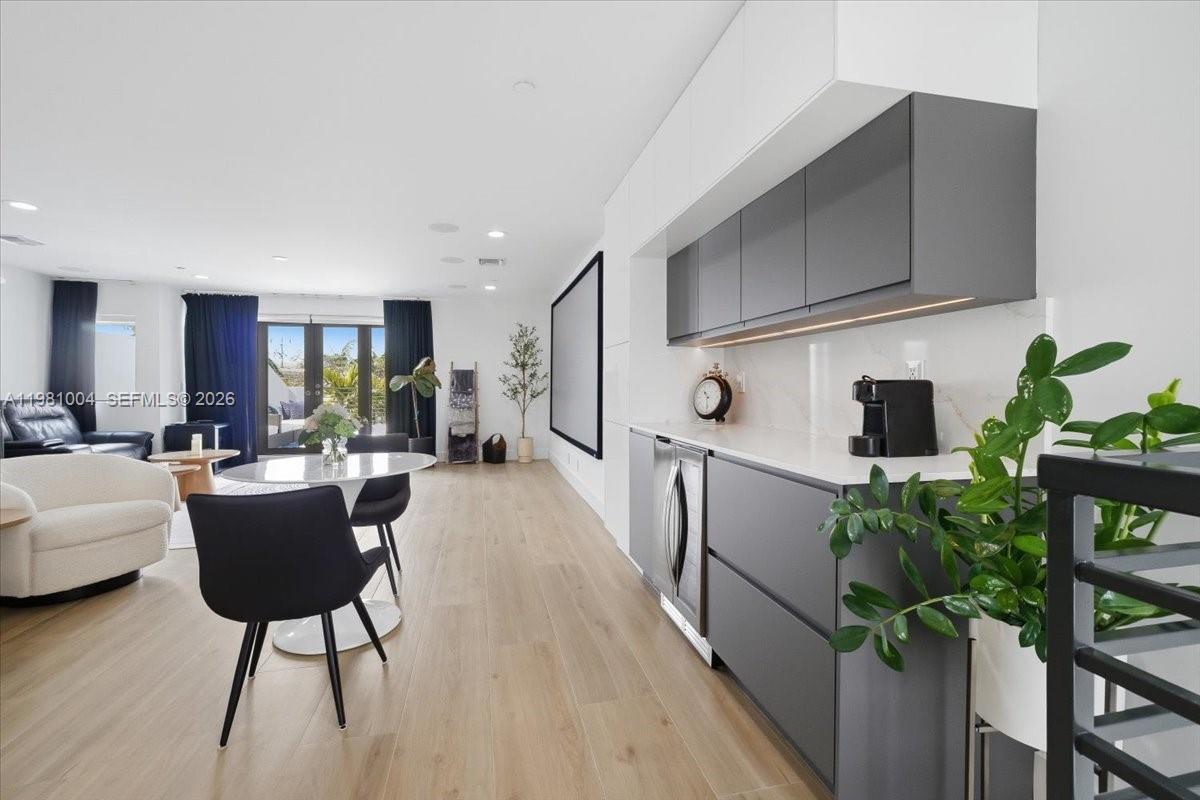 Situated in the sought-after Victoria Landing community in Victoria Park, just steps from Holiday Park and minutes to Las Olas, the beach, and Fort Lauderdale’s best dining and lifestyle, this tri-level townhome offers nearly 3,500 sqft under air. Featuring 3 bedrooms, 3.5 bathrooms, a private elevator servicing all floors, and a 2-car garage, the home offers spacious bedrooms, abundant closet and storage space, and upgraded porcelain tile flooring throughout. A private gated entry opens to a tropical courtyard with pool, lounge area, and BBQ, creating a true outdoor retreat. The main level features a bright open-concept layout with quartzite kitchen, bar seating, KitchenAid appliances, electric fireplace, and expansive sliding doors. The second level offers expansive bedrooms, a luxurious primary suite, and a flex space ideal for a home office. The entire third floor is designed for entertaining, featuring a third bedroom and a spacious entertainment loft with projector screen, built-in speakers, and a bar with wine cooler, opening to an expansive rooftop terrace overlooking Victoria Park and the city.