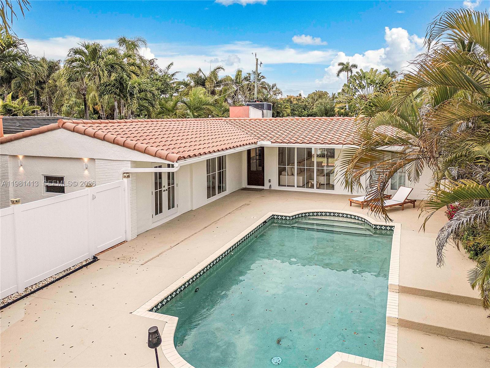 Nestled on a quiet, tree-lined street in Poinsettia Heights, this 3-bedroom, 2-bath move-in ready home is built around an oversized saltwater pool and private, fenced backyard — ideal for entertaining and everyday Florida living. Inside, the living room, dining area, and Florida Room flow seamlessly together, with views of the pool and backyard from multiple rooms. The renovated kitchen with gas range opens to the main living areas, and the Florida Room offers flexible space for a sitting area, home office, or lounge. Newly installed impact windows and doors provide storm protection and abundant natural light throughout. Recent updates include renovated kitchen and bathrooms, updated flooring and baseboards, water heater (2022), smart washer and dryer (2022), A/C (2019), and sprinkler pump and timer (2024). Ideally located near Publix, neighborhood dining and shopping, Wilton Drive, Las Olas Boulevard, and Fort Lauderdale Beach.