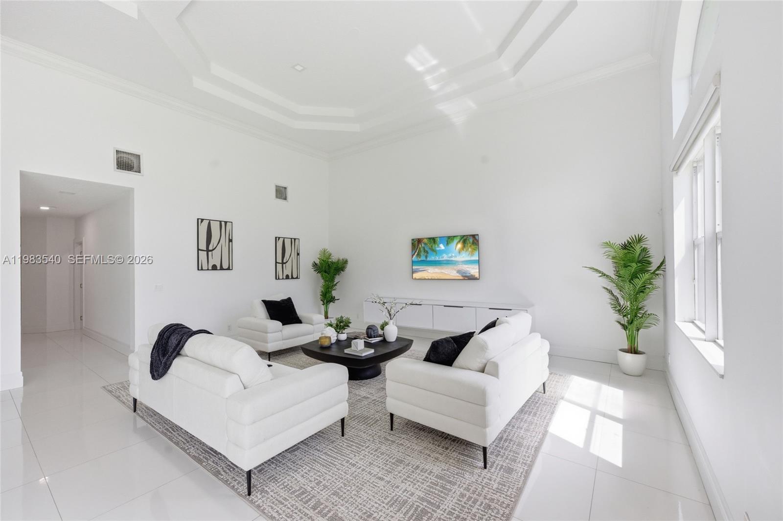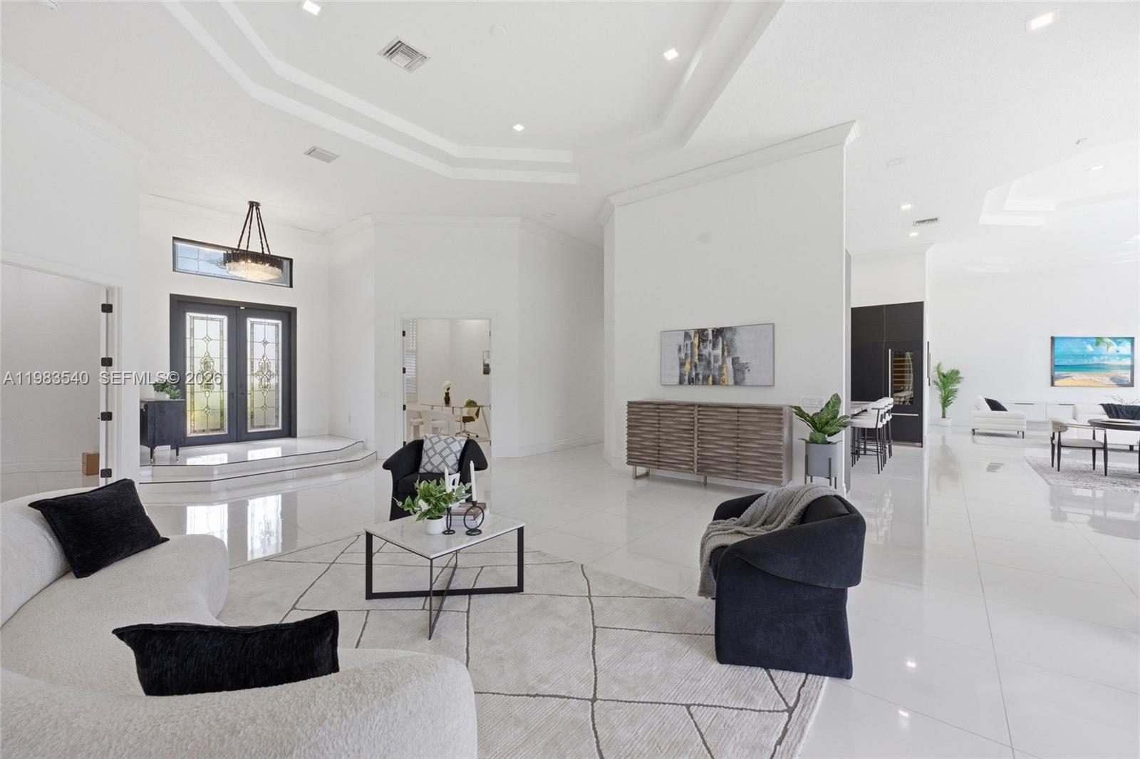 Set within the gated enclave of Emerald Springs Estates, this modern elegance is on the community’s largest lot with 1.5 acres of beautifully designed grounds, complete with a private sports court and resort-style outdoor living. Fully remodeled in 2021, the home offers 4 bedrooms and 4 bathrooms, each updated with new showers, designer fixtures, custom closets, and sleek white porcelain flooring that carries throughout the residence. The primary suite is a true retreat, with an oversized room highlighted by a Chanel-influenced walk-in closet with luxury designer flooring. The kitchen is equally impressive, reimagined with top-tier finishes and a complete collection of Fulgor Milano Italian appliances, including two refrigerators, a wine fridge, double oven, drawer microwave, built-in espresso machine, an island beverage fridge, and a Bosch dishwasher. Three A/C units, a new water heater, new washer and dryer, and accordion shutters offer comfort and peace of mind. The pool and spa were fully renovated in 2021. Expansive outdoor space and room to personalize with an outdoor kitchen or additional amenities, this rare Davie estate blends luxury, privacy, and scale in a way few homes can match.