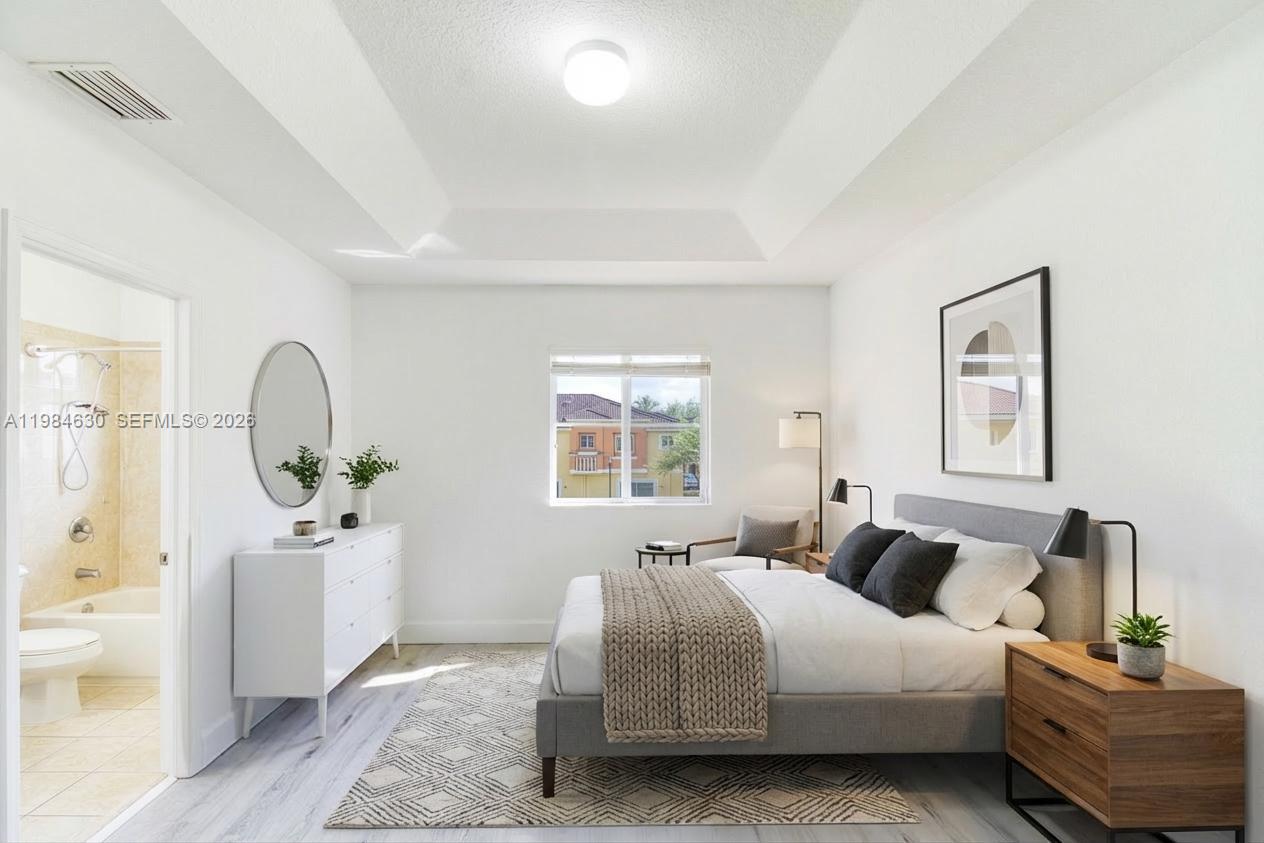 Beautifully renovated corner townhome built in 2014 in the highly sought after gated community of the Village at Miramar. Inside, the home showcases thoughtful upgrades, including a modern open-concept kitchen, a new A/C system, and durable vinyl flooring throughout the upper level—making this move-in-ready residence a perfect blend of comfort and style. The family room walks out to the courtyard great for kids and furry friends to play. The corner unit location offers a more spacious feel compared to interior units. The surrounding area enhances the lifestyle appeal, with a wide variety of shopping centers, grocery stores, restaurants, and local dining spots just minutes away. The community features a great pool and playground to enjoy. FHA and VA welcome and Roof is included in HOA fee. Move quick on this one!