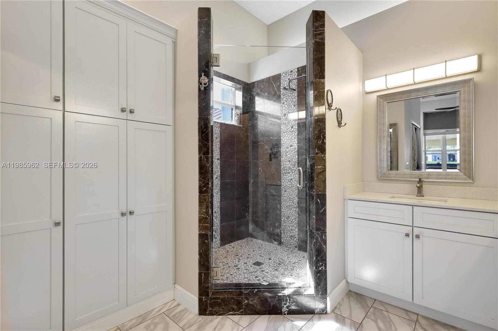 Set on one of the larger lots in the neighborhood, with 87 feet of tranquil lake frontage, this four-bedroom, two-and-a-half-bath, 2414-square-foot home offers refined living. The master bedroom is updated, with a fully remodeled master bath. Impact windows and impact sliding glass doors throughout the home bring in plenty of natural light, leading to a standout extended patio, outdoor entertainment space, complete with a built-in bar, grill, and hurricane-resistant screen enclosure system. The backyard fire pit invites cozy evenings. Large kitchen is ideal for accommodating and entertaining. Located just off the I-75 exit, commuting to Doral, Miami, Fort Lauderdale and beyond is seamless. With elementary, middle, and high schools just down the road, a two-car garage, and a utility basin in the laundry room, this home blends everyday function and ideal location, with South Florida charm.
