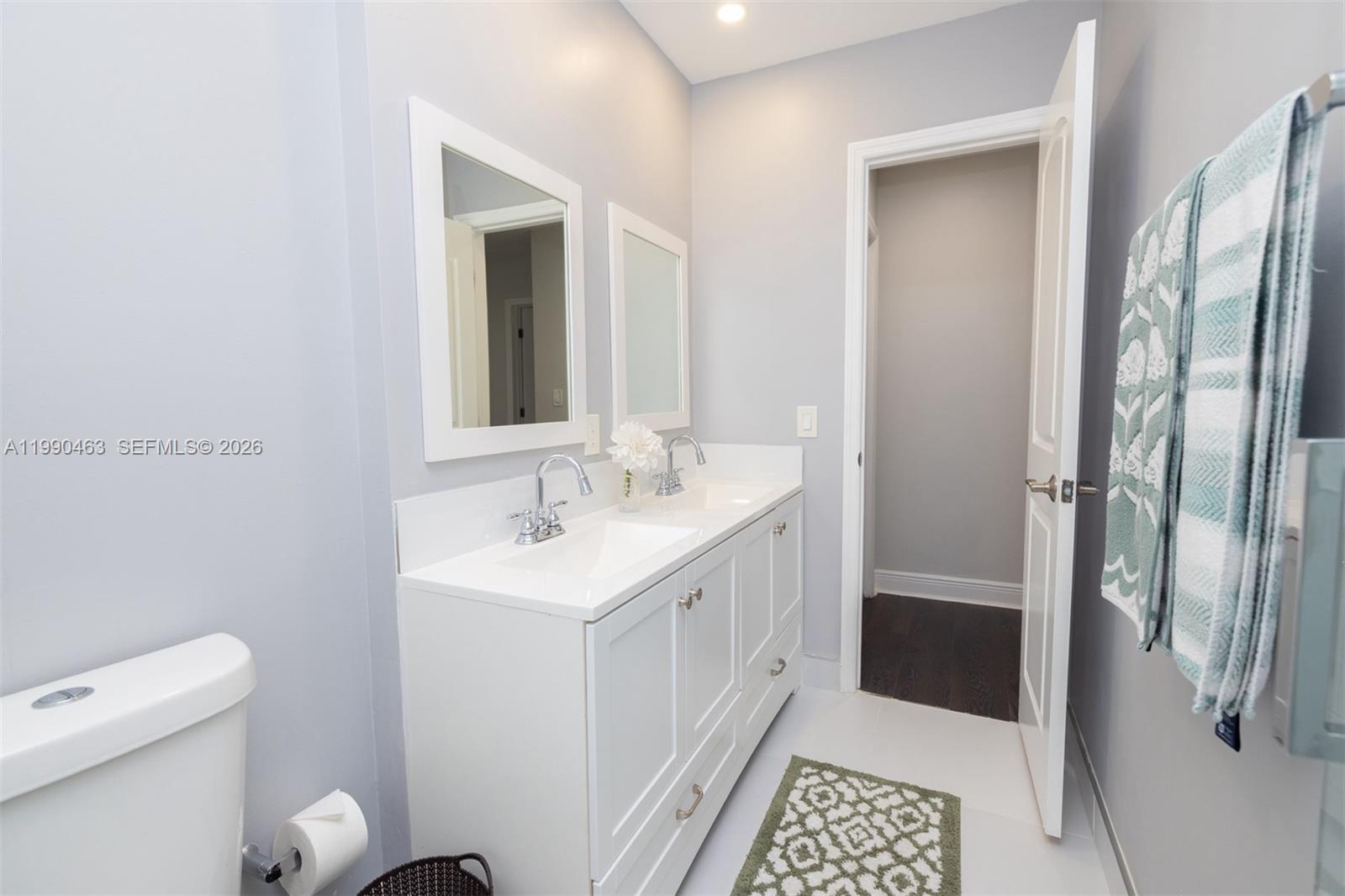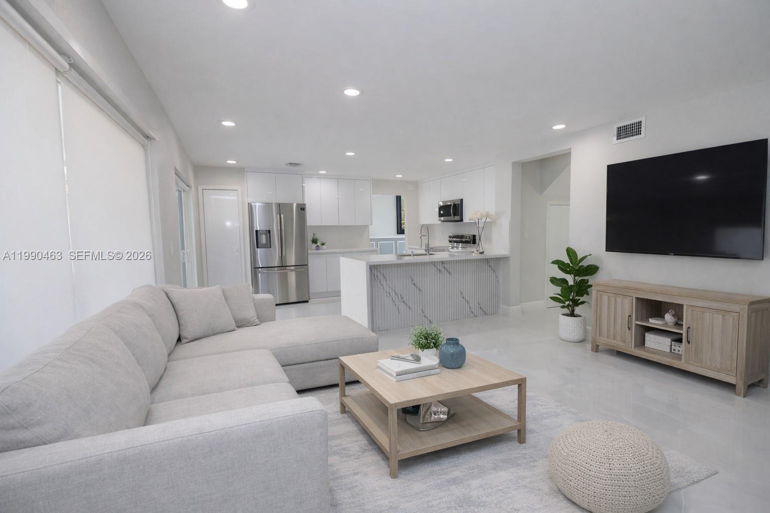 SHOWCASE HOME in the coveted guard-gated community of Poinciana at Sunset Lakes Estates. From the new porcelain floors and complete impact glass to the flat tile roof, it has been completely remodeled with impeccable taste and standards. Volume ceilings elevate the formal living room while the dining room overlooks the large covered patio. Gaze at the dream kitchen with never-used appliances that adjoins the family room. The layout offers 4 bed/3 renovated baths including 1bed/1bath on the first floor plus a in-law suite. The primary suite features his & her closets and a luxurious bath with dual vanity & walk-in shower. Low HOA. Great park right across from the guard house, excellent schools and shops & dining on Kendall Dr. just minutes away.