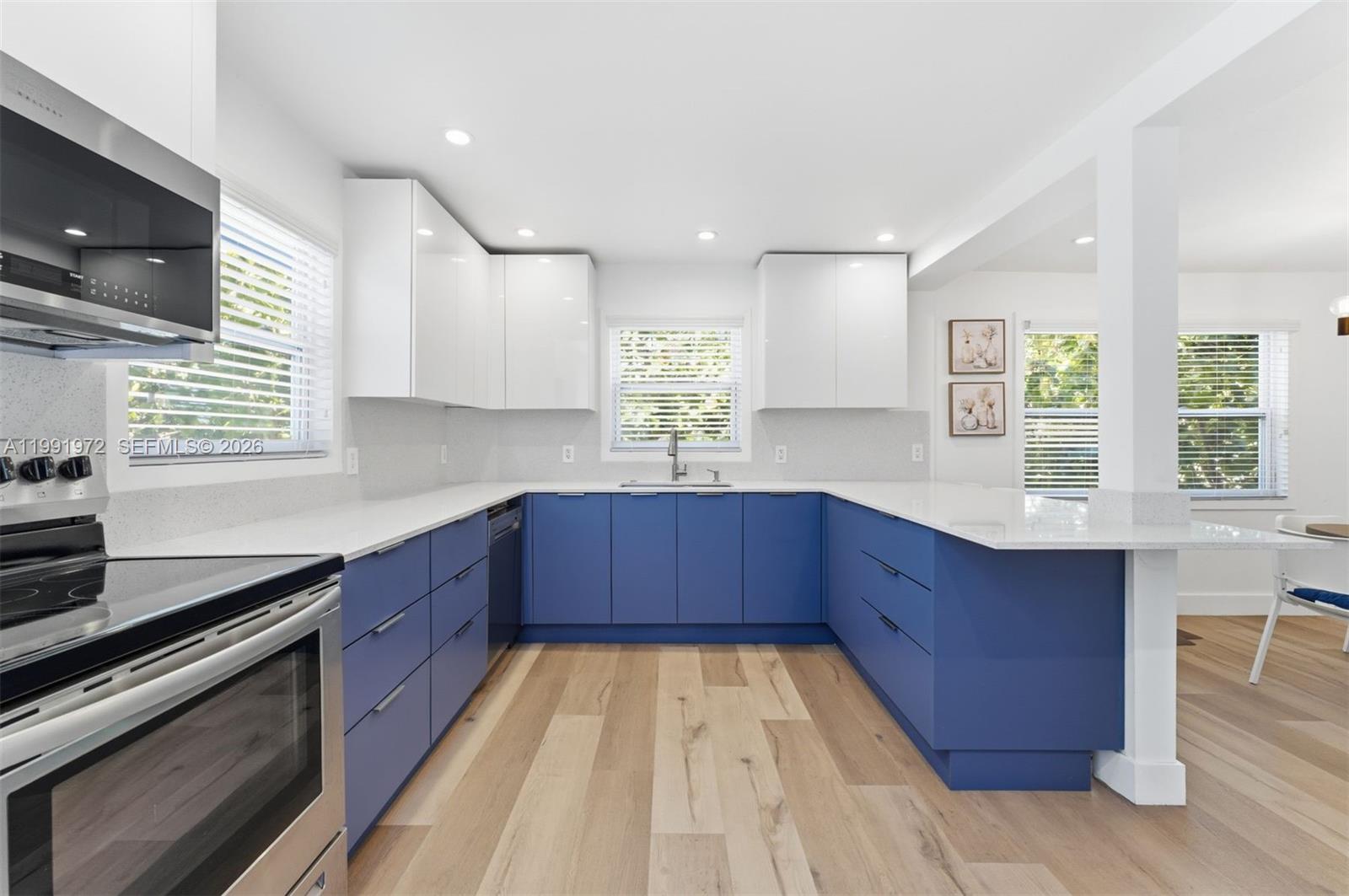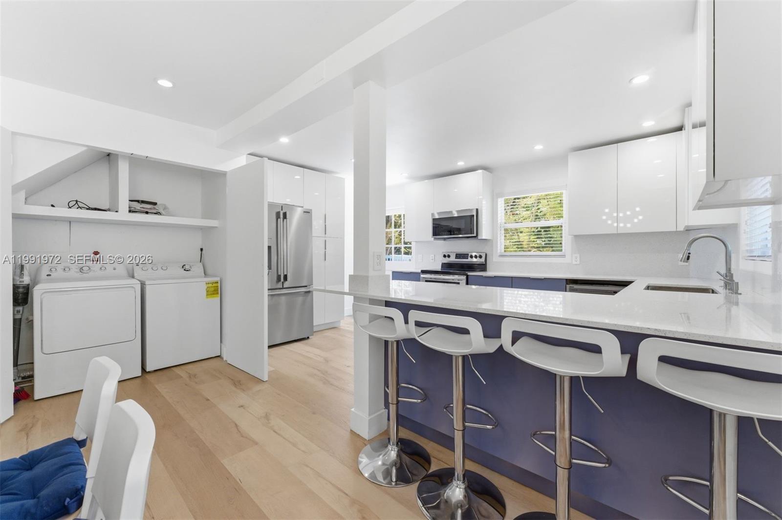 "Blue Haven" is a beautifully renovated elevated 2-story residence in the heart of Islamorada, offering the ideal blend of modern upgrades and relaxed Florida Keys living. This fully remodeled home features a vibrant blue exterior and a bright, contemporary interior designed for comfort and style. The home offers 3 bedrooms and 2.5 bathrooms, with nearly 1,700 square feet of interior living space complemented by expansive outdoor terraces perfect for entertaining or unwinding in the tropical breeze. Inside, you’ll find a brand-new kitchen with solid wood cabinets, quartz countertops, and stainless steel appliances. Additional upgrades include new vinyl flooring throughout, recessed lighting, fresh interior and exterior paint, and new split A/C units for efficient cooling. Partial impact windows provide added durability and peace of mind. The ground level offers generous open space with excellent potential for future development, storage, or the addition of a pool. Situated on a 6,600 sq ft lot, the property provides both flexibility and value in a prime location. A true Boater’s Paradise, residents have access to a private boat ramp available for just $150 per year. Being offered fully furnished and turnkey, this property is well-suited as a primary residence, vacation getaway, or income-producing rental. A rare opportunity in the heart of the Florida Keys.