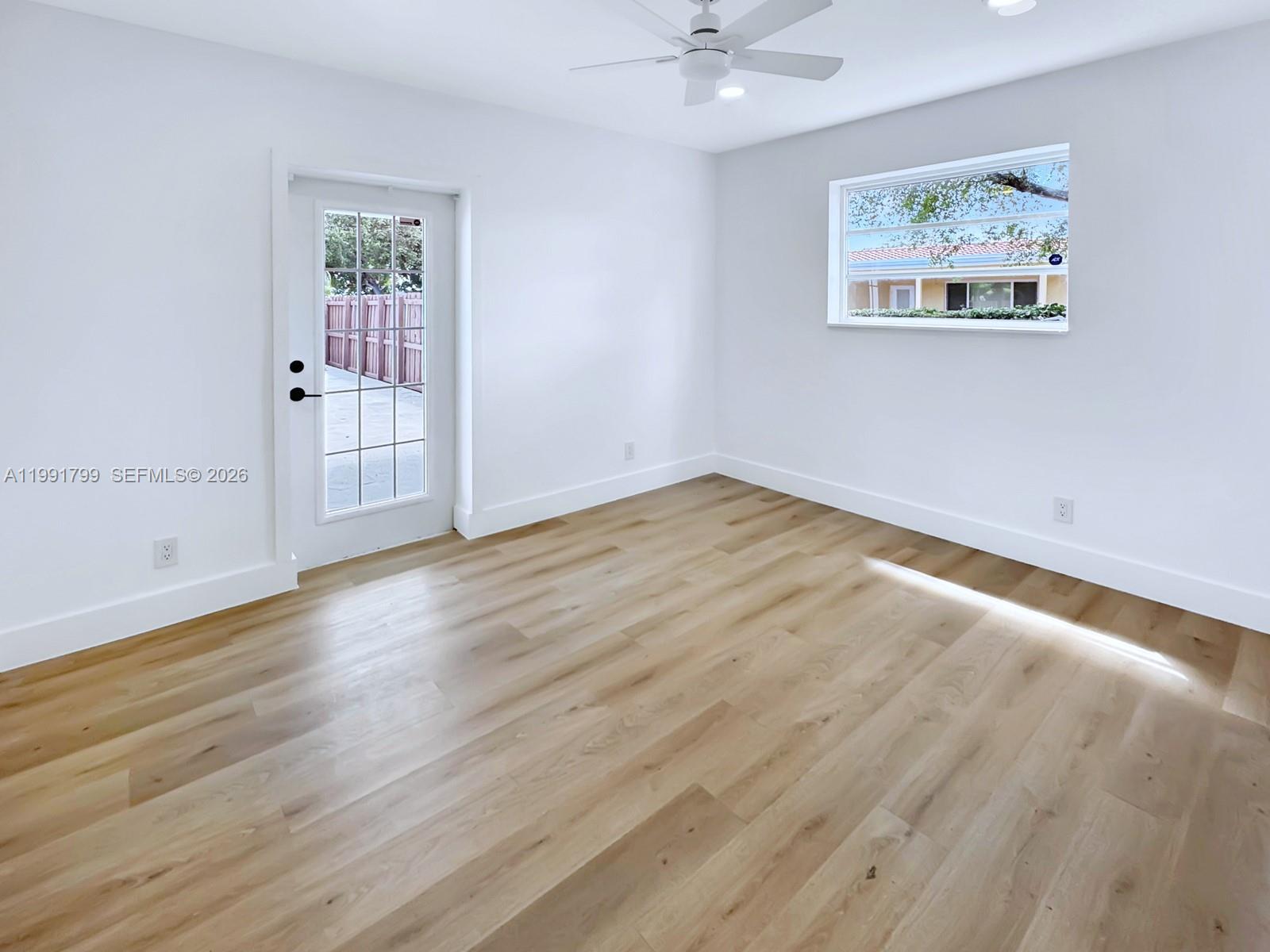 This single family home is located in the Hollywood Hills area and has 3 bedrooms and 2 bathrooms, along with an additional enclosed room that may be used as a 4th bedroom, office, or flex space. The home has been fully remolded and updated with a new kitchen featuring white cabinetry, gold tone hardware, stainless steel appliances, and a large island. Interior features include new wood style laminate flooring, updated bathrooms, and fresh interior and exterior paint. French doors lead to the patio and pool area, creating a bright and open connection to the outdoor space. The pool has been resurfaced and the pool deck has been updated, for a great backyard to enjoy. Additional features include a new washer and dryer and a circular driveway. All bedrooms, including the primary bedroom have direct patio and pool access with access to the backyard, a walk in closet, and an updated bathroom that will leave you feeling like you are at the spa. No HOA and convenient access to shopping, dining, parks, and is approximately six miles from Hollywood Beach.