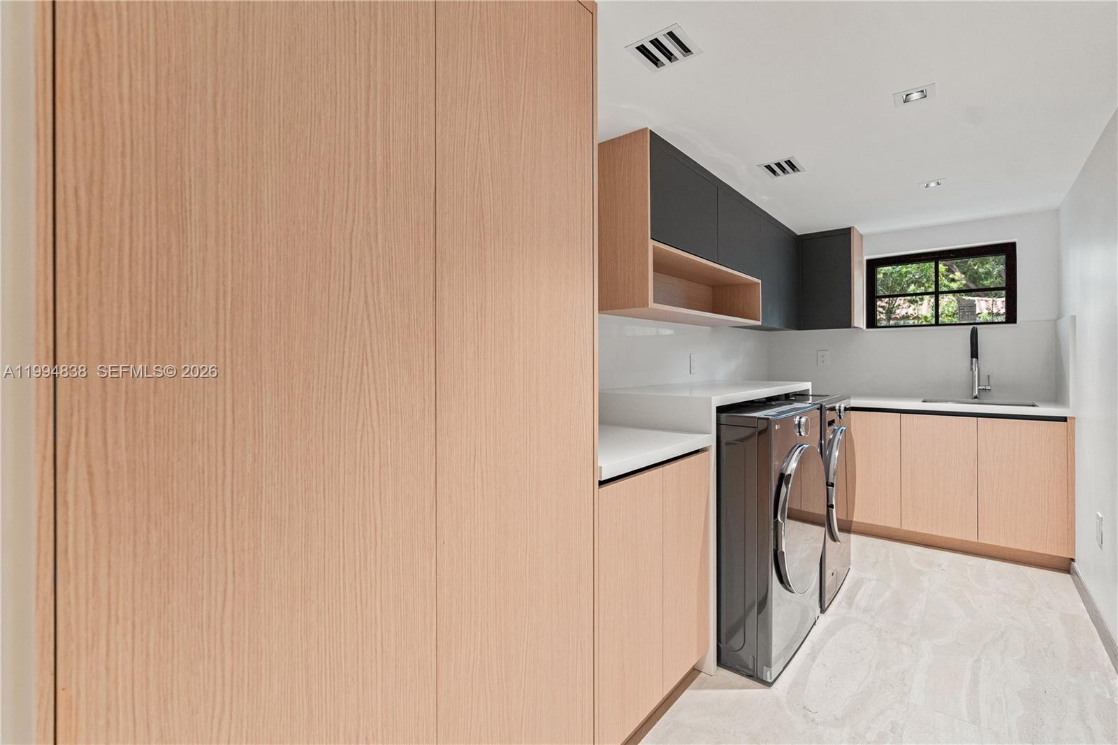 Exceptional residence rebuilt to the studs and completed in 2026, with only the original exterior shell retained. This 99% new construction home offers timeless elegance, warm modern design and exceptional attention to detail. The home features 4 bedrooms, an integrated den/office, and 4 bathrooms. Designed for modern living and effortless entertaining, it offers expansive living, dining, and family areas filled with natural light. The custom white oak kitchen includes premium Bosch appliances, a panel-ready refrigerator, pull-out pantry with high-end Blum hardware, a large island, Italian fixtures, and a 175-bottle wine cooler. White oak floors in the bedrooms, porcelain tile in the main areas, Italian-style closets, luxury baths, designer lighting, and custom millwork complete the refined interior. Seamless indoor-outdoor flow defines the home, with a covered terrace, full BBQ summer kitchen, ice maker, and a newly built contemporary pool. Additional features include a covered A/C two-car garage, new driveway, aluminum fence with electronic gate, modern exterior lighting, lush landscaping, irrigation system, and full smart home automation. Located on a quiet street near the Miami Shores Tennis Club, golf course, cafés, restaurants, village shops, and minutes from top schools, this non-flood zone property delivers location, lifestyle, and design at the highest level.