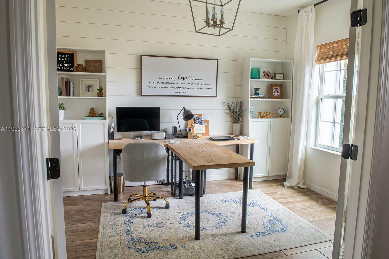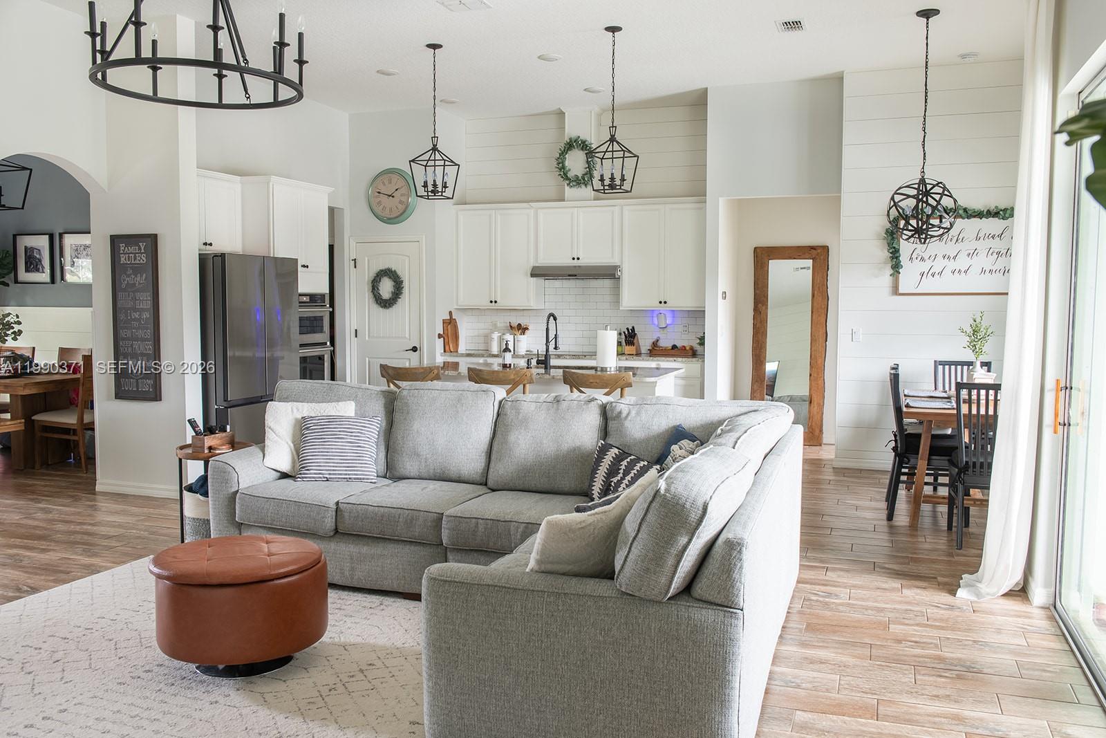 Exquisite turn-key 4-bed, 3-bath home offering 2,338 square feet of thoughtfully designed and meticulously maintained living space. Built in 2017 and set on a spacious corner lot of more than a quarter acre with no HOA, this property stands apart from typical cookie-cutter new builds with its character, style, and high-quality finishes. Step inside to soaring high ceilings and a bright open-concept layout that seamlessly connects the main living areas. A private front office with elegant French doors provides an excellent work-from-home setup, while the formal dining room is ready to host gatherings of any size. The gourmet kitchen serves as the heart of the home, equipped with stainless steel appliances, granite countertops, and generous prep and storage areas. The primary suite provides a comfortable escape, highlighted by a large walk-in closet with custom built-ins. Enjoy outdoor living in the fenced backyard, featuring a covered screened-in patio and mature fruit trees (including coconut, avocado, and mango). Both the roof and HVAC are in great condition, adding valuable peace of mind. Ideally located just minutes from the Turnpike, I-95, shopping, and dining, this home delivers a great balance of convenience and privacy. This is a rare opportunity to own a well-maintained property that truly stands apart from the rest.