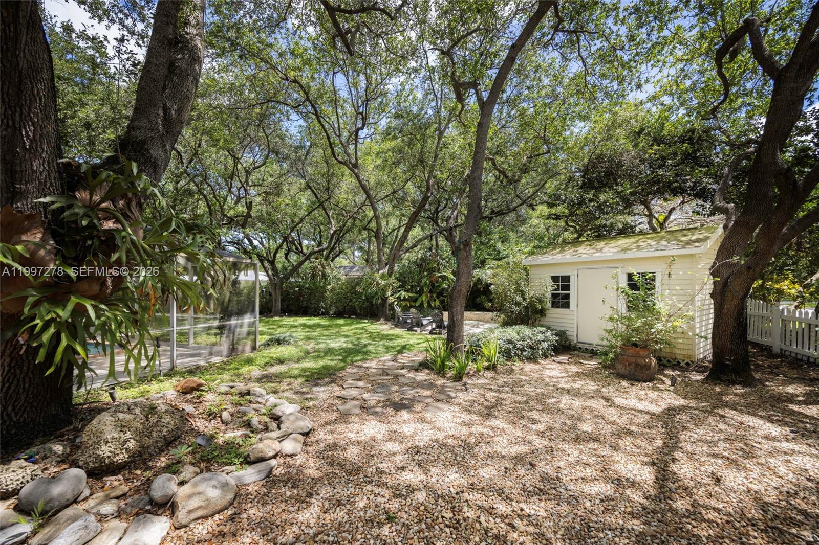 An exceptional corner property framed by eighteen oak trees, lush staghorn ferns, and a charming white picket fence that creates a storybook setting. Nestled in a highly desirable pocket of east Palmetto Bay just a few blocks from the bay, this 4-bedroom, 2.5-bath residence welcomes you with a formal foyer, warm wood floors, and French doors overlooking the pool. Imagine living in a neighborhood where neighbors become friends, with block parties, holiday gatherings, and pickleball games bringing the community together. Enjoy bike rides to the Old Cutler Trail, your morning coffee at Starbucks, and evenings exploring quaint local restaurants or catching concerts and breathtaking sunsets at the Deering Estate. A rare opportunity to experience the perfect blend of charm and community.