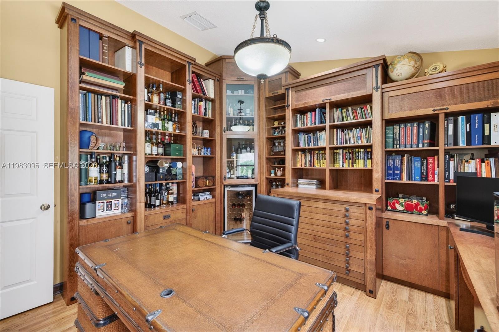 This stunning custom home in the prestigious Grand Palms offers elegant, single-story living designed for comfort and entertaining with a stellar triple split floor plan on an oversized private lot with no neighbor behind and a cul-d-sac street. The home features volume ceilings, built-in shelving, custom closets, a dedicated office (1 bedroom converted) w/ custom built ins & beverage cooler, wood-burning fireplace & luxury wrought iron lighting. The open floor plan flows seamlessly to a tropically landscaped & oversized backyard oasis w/ heated pool & spa, grassy area, expanded overhangs and extended paver patio & driveway & integrated outdoor sound system, perfect for gatherings with the best Eastern backyard Exposure for breezes and soft lighting. Recent updates and high-end systems include a 2017 roof, 2023 Trane and 2020 Rheem central A/Cs, updated pool equipment, kitchen w/ Dacor refrigerator & upgraded appliances, and a Tesla-ready oversized garage for 2 cars and a golf cart. Additional features include indoor & outdoor speakers (Bose, Yamaha & Sonos), Ring doorbell, accordion hurricane shutters. This home delivers a turnkey lifestyle in one of Pembroke Pines’ most desirable communities with 24/7 security, on site management, cable, high speed internet & community maintenance.
