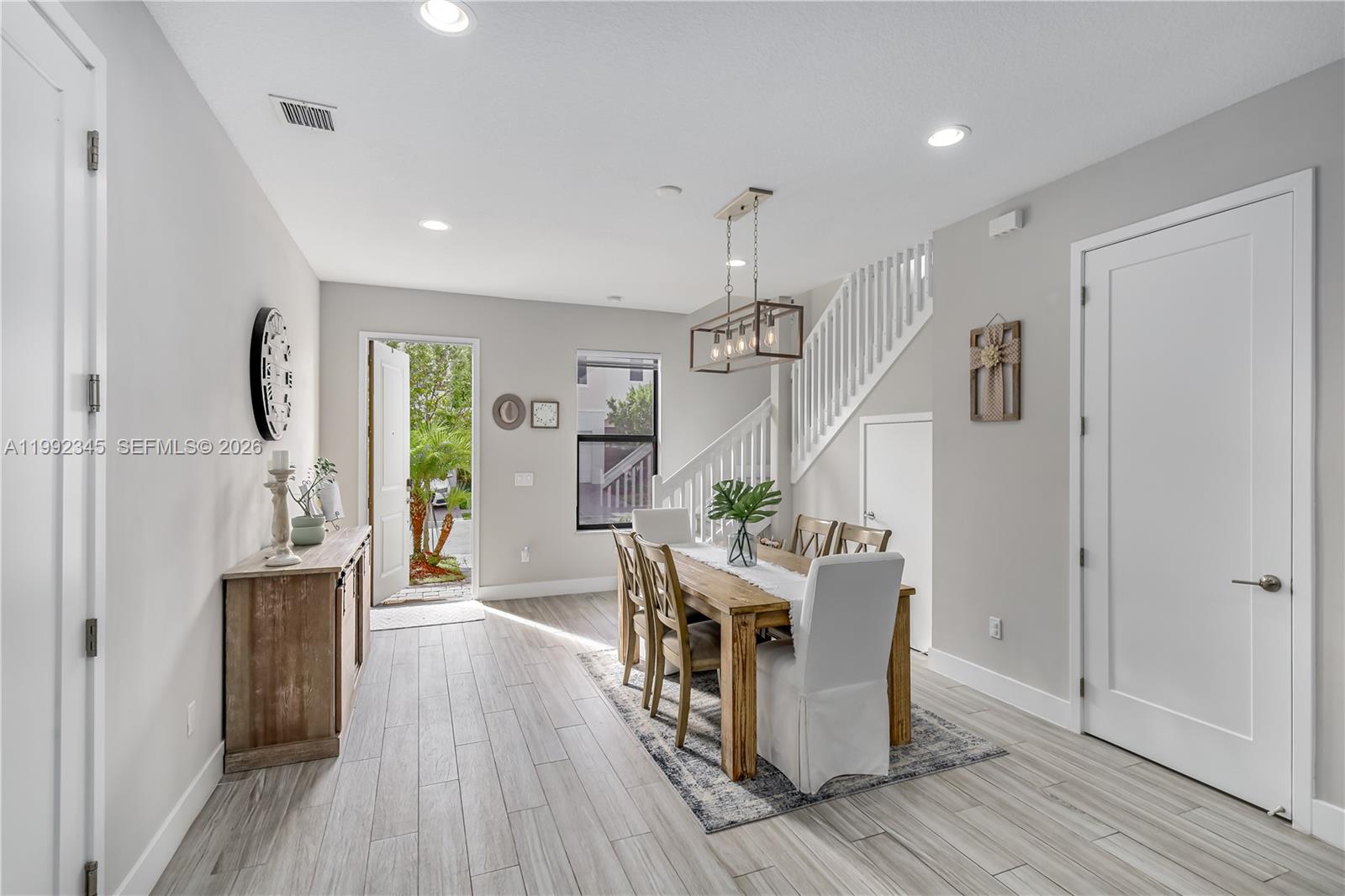 Welcome to this stunning 2019-built smart home located in the highly sought-after gated community of Chapel Grove. This modern townhouse offers 3 bedrooms, 2.5 bathrooms, and nearly 2,000 total square feet of living space. The open-concept first floor features elegant ceramic tile flooring, new flooring second floor and a chef-inspired kitchen with white quartz countertops, stainless steel appliances, and a brand-new dishwasher. Brand new AC! The home is fully smart-wired, allowing you to conveniently control temperature, security, and lighting right from your phone. EV Charger in garage, Enjoy living in a top-rated school district with access to resort-style amenities, including a pool, fitness center, and basketball court. HOA includes gate, pool gym, lawn, trees and mulch maintenance.