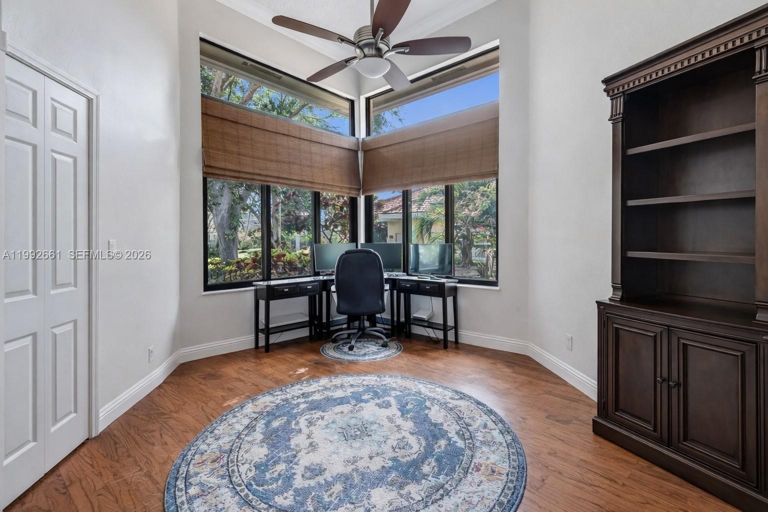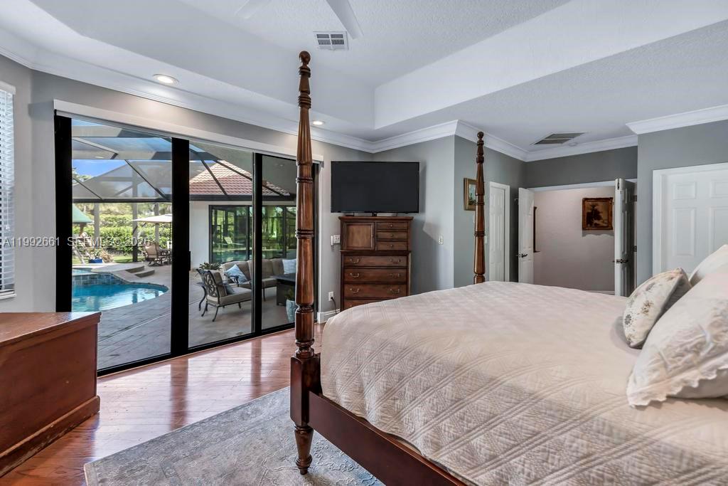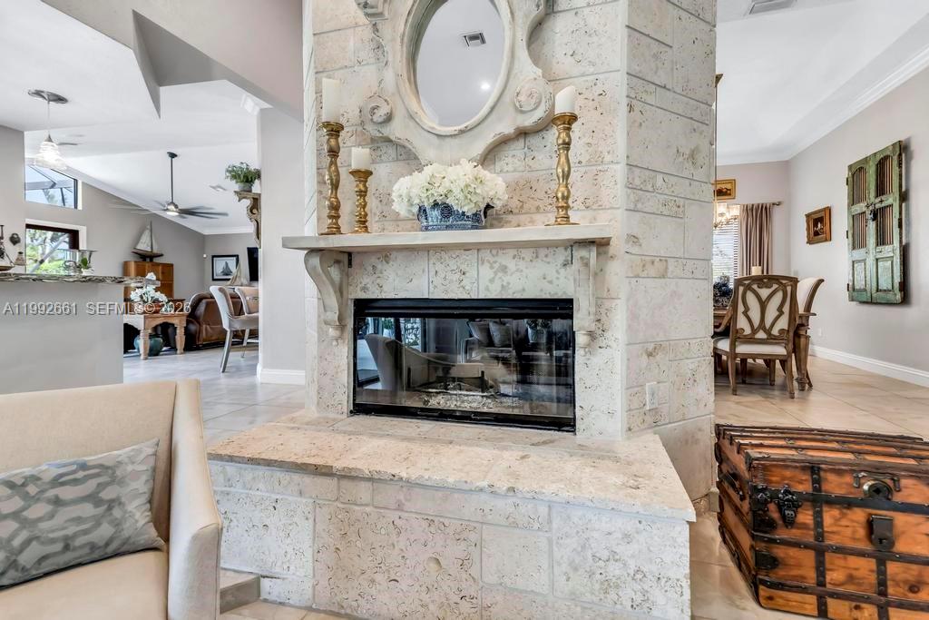 Stunning 5-bedroom, 4.5-bathroom estate featuring a grand entrance with soaring ceilings and an abundance of natural light throughout. The home offers elegant formal living spaces, including a cozy fireplace in the formal living room and a spacious dining area perfect for entertaining, along with a second expansive living room that provides plenty of space for relaxing or hosting gatherings. At the heart of the home is a chef’s kitchen designed for both function and style, complete with dual islands, stainless steel appliances, a spacious pantry, and an open layout that flows seamlessly into the main living area. Built for both comfort and peace of mind, the home is equipped with full hurricane impact windows and doors throughout, offering enhanced security, energy efficiency, and storm protection. The expansive primary suite serves as a private retreat with sliding glass doors leading to the backyard, oversized walk-in closets with custom built-ins, and a luxurious spa-like bathroom featuring a large walk-in shower. Guest bedrooms are thoughtfully positioned on the opposite side of the home, including a Jack and Jill bathroom for added convenience. The freshly painted exterior enhances the home’s curb appeal, while the backyard offers a true resort-style setting with travertine pavers, a sparkling pool, ample green space, a newer screened enclosure, breathtaking wide lake views, and a convenient outdoor half bathroom creating the perfect space to relax or entertain.