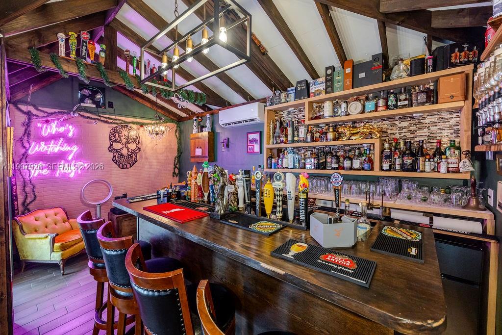 Stunning gated estate on 1.5 acres, ideal for family living and entertaining. Features 4 bedrooms, 3 full baths, and 2 powder rooms. Newly redesigned gourmet kitchen with Viking appliances, electric cooktop, double ovens, ice machine, refrigerator drawers, and dual islands. Accordion doors open to a resort-style pool area with pergola, sauna, and a freestanding English-style pub. Includes a 2-car garage, new roof, impact-resistant windows and doors, and whole-house water filtration. Exceptional privacy and lifestyle in a truly special property. Signed lease in place — tenants contracted for 10 months at $16,000/month, providing immediate income from day one.