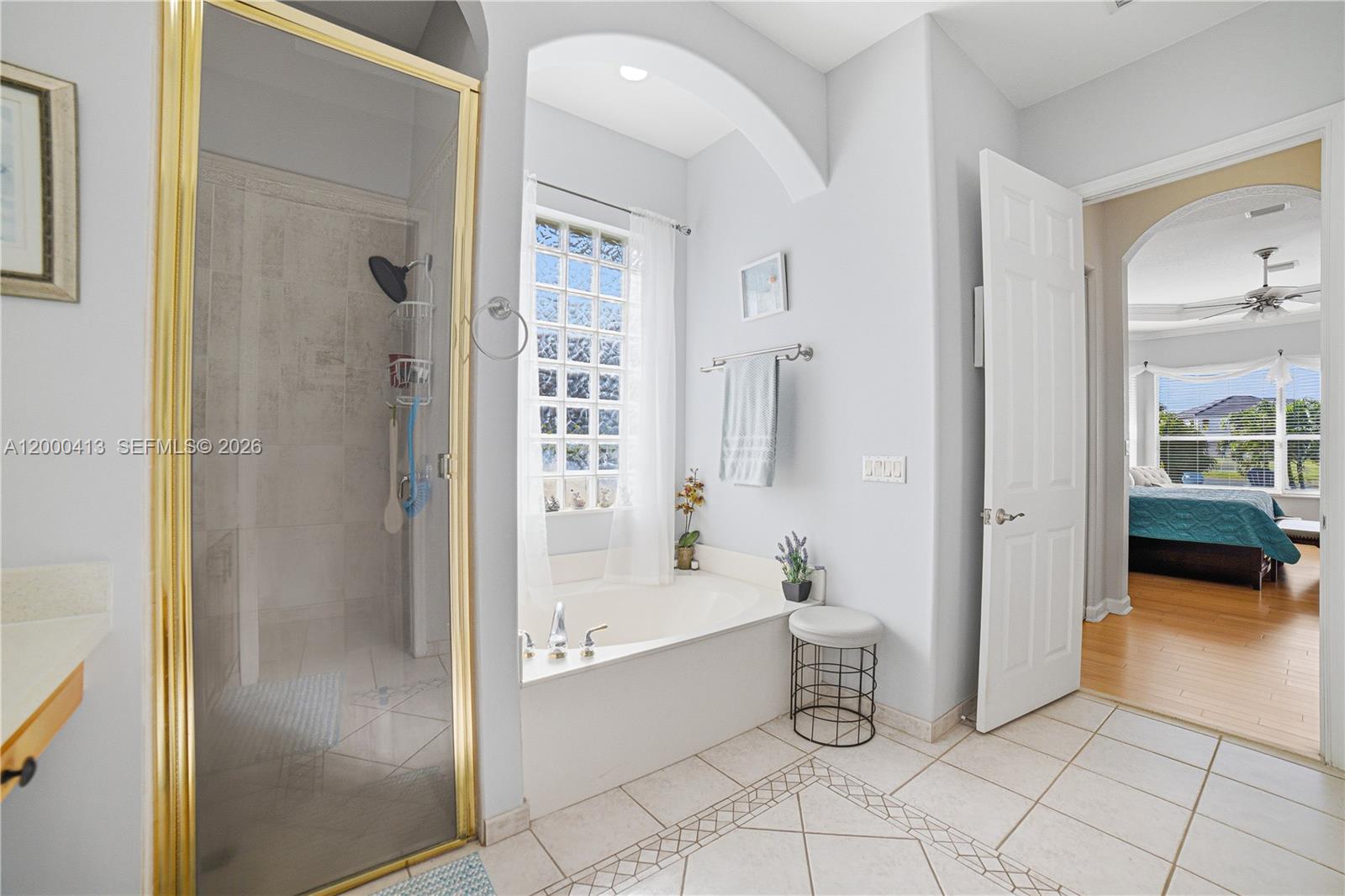 Welcome to this beautifully maintained 3,037 sq ft residence in the highly sought-after and gated Sunset Lakes community in west Miramar. This spacious home features 4 bedrooms / 2.5 bathrooms, vaulted ceilings, a desirable split floorplan with tile flooring throughout main living areas and laminate in select spaces. The open-concept design seamlessly connects the living, dining, and kitchen areas. The renovated kitchen is a true centerpiece, showcasing a stunning quartz waterfall island, stainless steel appliances, and ample cabinetry. The expansive master suite offers tranquil pool and canal views, along with an updated spa-like bathroom featuring a large soaking tub, separate water closet, and modern finishes. Additional highlights include a two-car garage and A/C replaced in 2020. Enjoy resort-style living with a low HOA of just $310/month, including high-speed internet, cable TV, and access to premium amenities such as a large clubhouse, state-of-the-art fitness center, Olympic-size swimming pool, tennis courts, and basketball courts