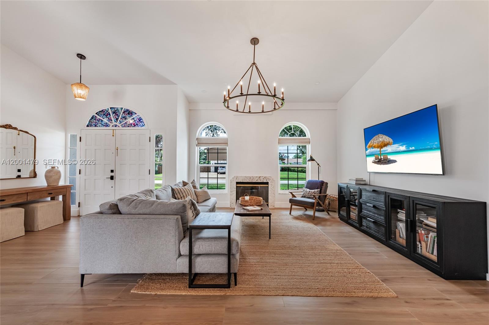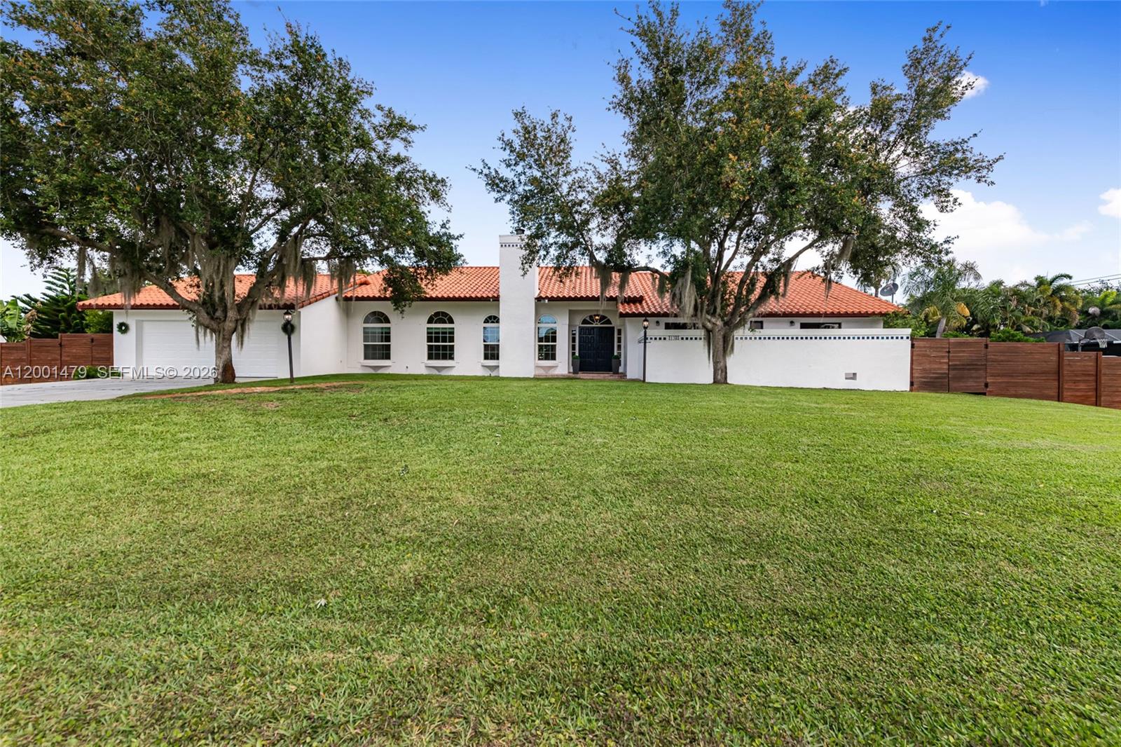 Step into your own private retreat in the heart of Plantation Acres. This beautifully updated home sits on a private 1/2-acre lot framed by lush evergreen hedges, offering a perfect blend of comfort and style. The designer kitchen features timeless white cabinetry, marble-style countertops, gas stove, large island, farmhouse sink, and stylish lighting. Soaring ceilings and a fully renovated interior with wide-plank flooring and smooth, modern walls create a bright, airy feel throughout. The home opens to a charming courtyard and expansive backyard with mango, tamarind, and guanabana trees. The expanded primary suite offers added space and a renovated bath. The spacious second bedroom feels like a true second primary suite, complete with its own en suite bathroom. Enjoy energy efficiency with $30 monthly electric bills via a $70K solar system + partial impact windows. Prime location with great neighbours, near Sawgrass Mills, dining, Panthers arena, and American Heritage. Fireplace. 2-car garage.