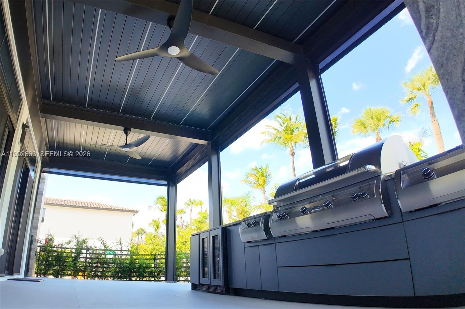 Built in 2023, this corner-lot residence in Doral delivers a rare combination of privacy, efficiency, and elevated everyday living. Set on a low-traffic street, the home offers a bright, modern layout with upgraded flooring, custom motorized blinds, and a refined Italian-style kitchen featuring premium cabinetry and upgraded countertops. Solar panels provide meaningful energy efficiency and long-term savings. Outdoor living is designed for effortless enjoyment, with a newly finished patio, pergola, and fully equipped BBQ area including grill, griddle, wine cooler, and ice maker, creating a seamless indoor-outdoor lifestyle. The garage is enhanced with slat-wall storage, workspace, and bike lift. All bedrooms feature en-suite baths, while the primary suite includes dual walk-in closets. A standout feature in this community: parking for four vehicles (two-car garage plus two additional paver spaces), a true rarity. Located just steps from CityPlace, Downtown Doral, top schools, dining, and cultural venues, this home offers a daily lifestyle that is both relaxed and refined, setting it apart from anything else in the neighborhood.