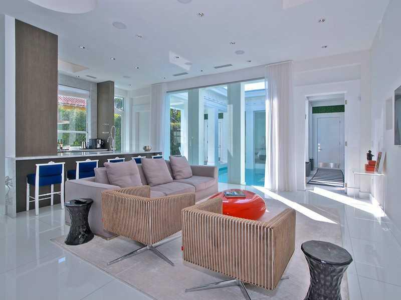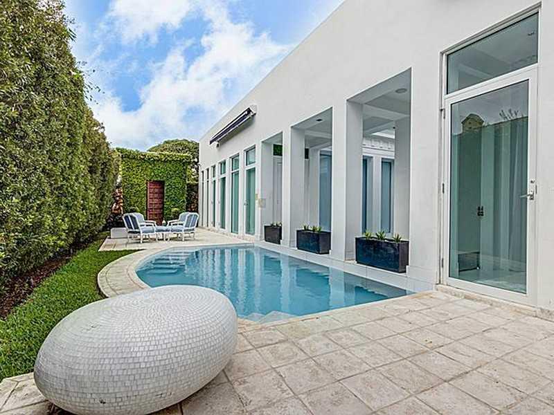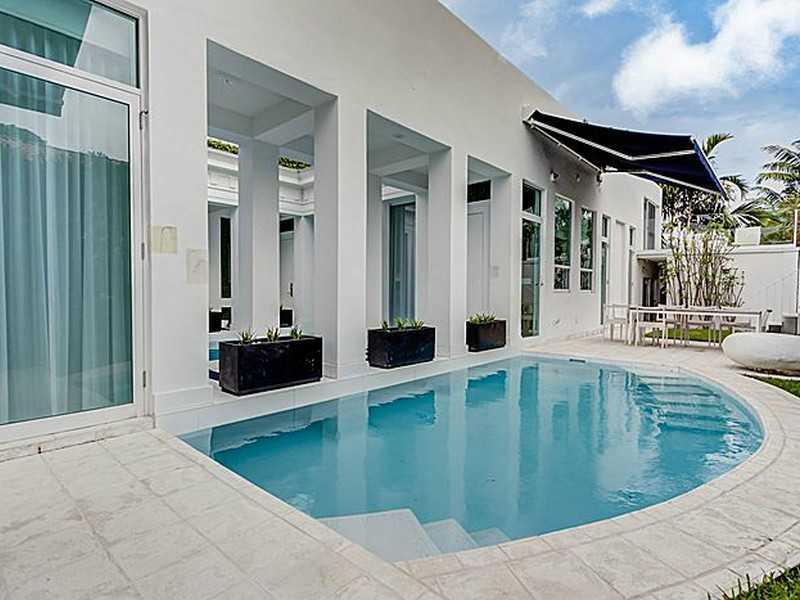 Unique contemporary home hidden behind ivy-covered façade in walking distance to Lincoln Road and up-and-coming Sunset Harbor neighborhood. Courtyard pool extends in to private back yard with separate guest house. Home was rebuilt to perfection with new r oof, electrical, security cameras, 36x36 white glass tiles, Smart Home System, electronic gates and much more. 15 ft high ceilings, grand master suite with adjacent office area, movie screen and whirl pool. Lots of light and one-of-a-kind features.